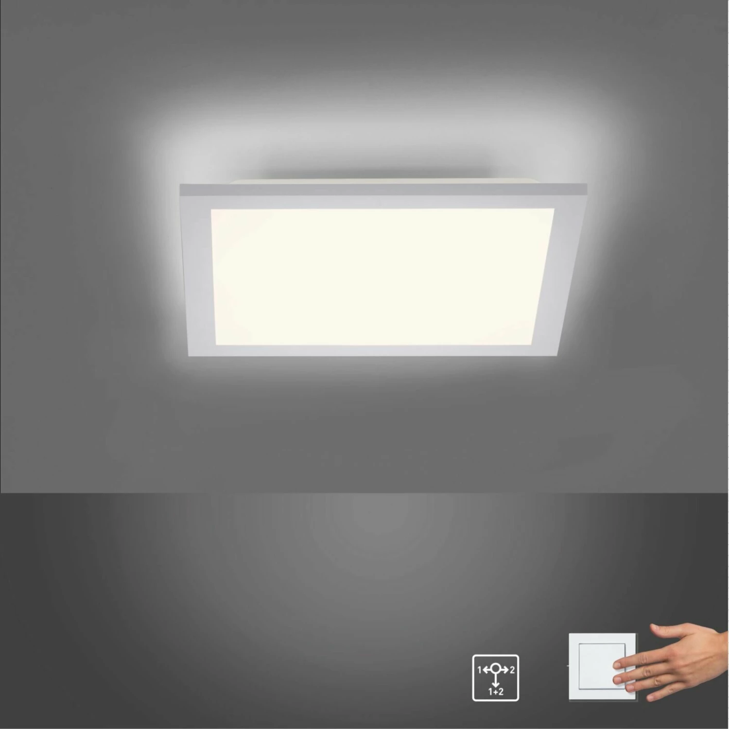 Eine Deckenleuchte mit eleganter Modernität. Durch ihr wunderschönes Design führt diese Deckenleuchte Ihr Zimmer in ein modernes Ansehen über. Die Deckenleuchte besitzt zu dem konventionellen Vorderlicht eine Hintergrundbeleuchtung. Dabei liegt die Entscheidung ganz bei Ihnen, nur das Vorderlicht, nur die Hintergrundbeleuchtung oder beide Lichter gleichzeitig für ein ausreichend helles Zimmer anzuschalten. Die Schaltung können Sie mit dem Wandschalter vornehmen und benötigen kein weiteres Werkzeug. Überzeugen Sie sich selbst von dieser wunderschönen Deckenleuchte.