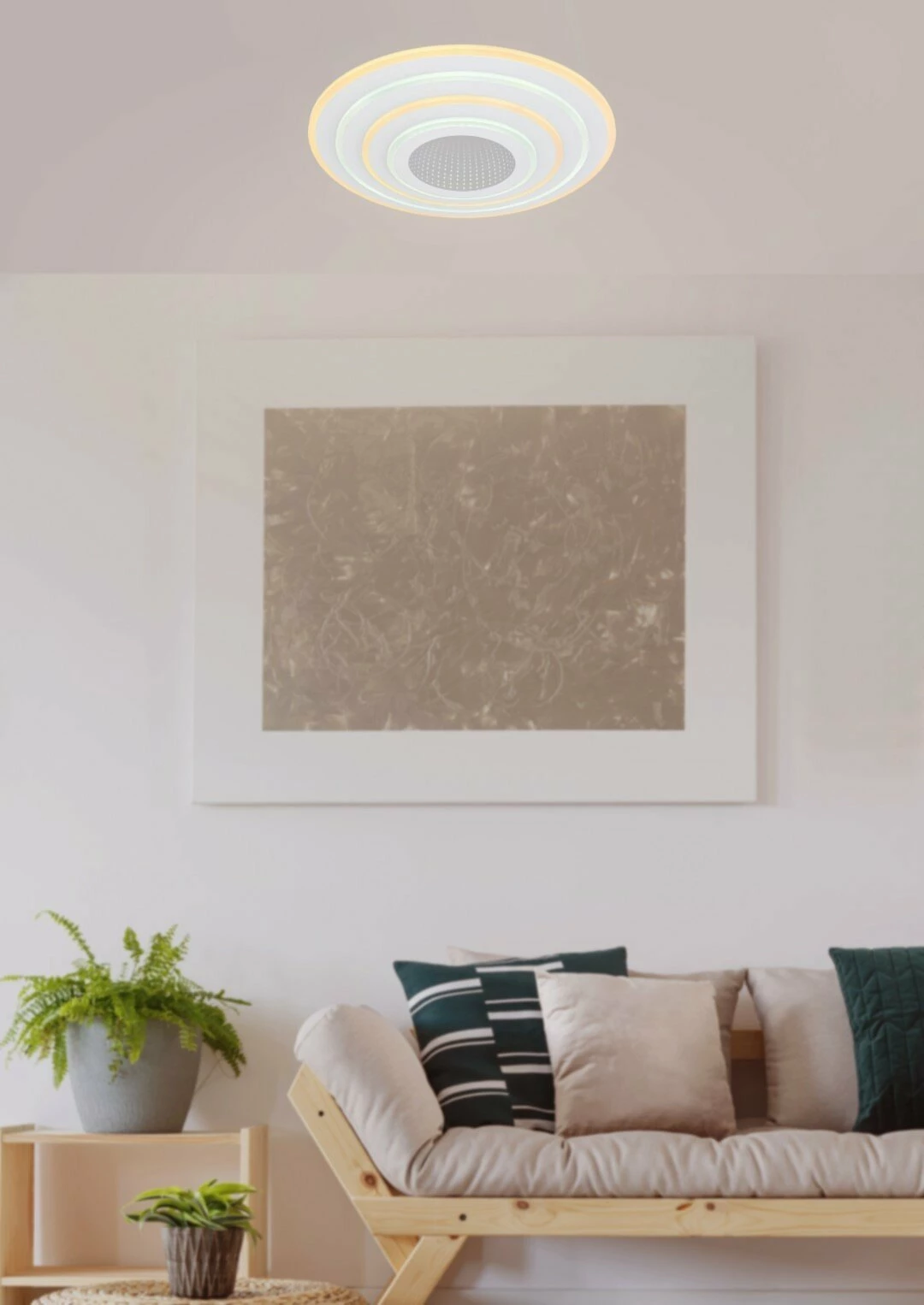 Ein schlichtes Design gepaart mit vielen nützlichen Funktionen: Diese LED-Deckenleuchte ermöglicht es dir bequem per Fernbedienung oder Smart Home App die Farbtemperatur und die Helligkeit nach deinen Bedürfnissen individuell anzupassen. Außerdem merkt sich deine Deckenleuchte dank der Memory-Funktion deine zuvor eingestellten Lichtsequenzen.
