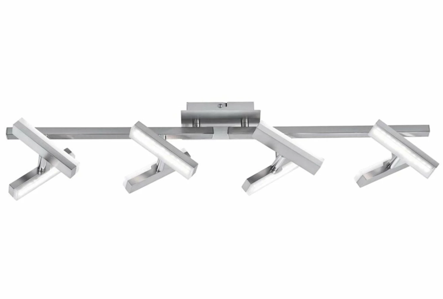 Der stahlfarbene LED-Deckenstrahler verfügt über acht LED-Boards, dessen warmweißes Licht für ein wohnliches Ambiente in Ihrem Raum sorgen wird. Die Spots lassen sich je nach Bedarf drehen und schwenken, sodass Sie sie ideal ausrichten und den Raum perfekt beleuchten können.
