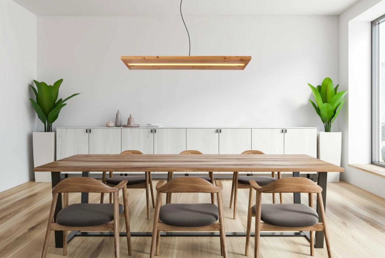 LED-HĂ€ngeleuchte – holzfarben-schwarz – 100 cm