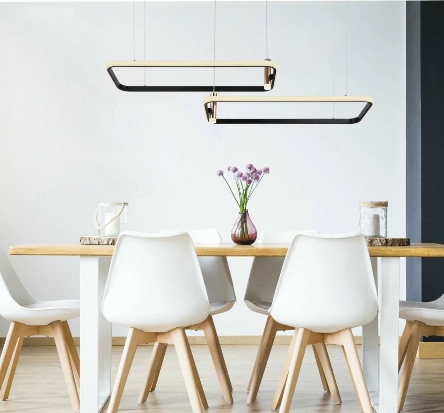 Diese Hängeleuchte ist ein wahrer Blickfang! Durch die goldfarbenen Akzente sieht die Lampe nicht nur besonders edel aus, sondern spendet auch ein angenehmes Licht, welches durch die mitgelieferte Fernbedienung gedimmt werden kann. Du möchtest es am Abend etwas gemütlicher haben oder brauchst helleres Licht? Dann kannst du die Lichtfarbe auch ganz einfach über die Fernbedienung einstellen.