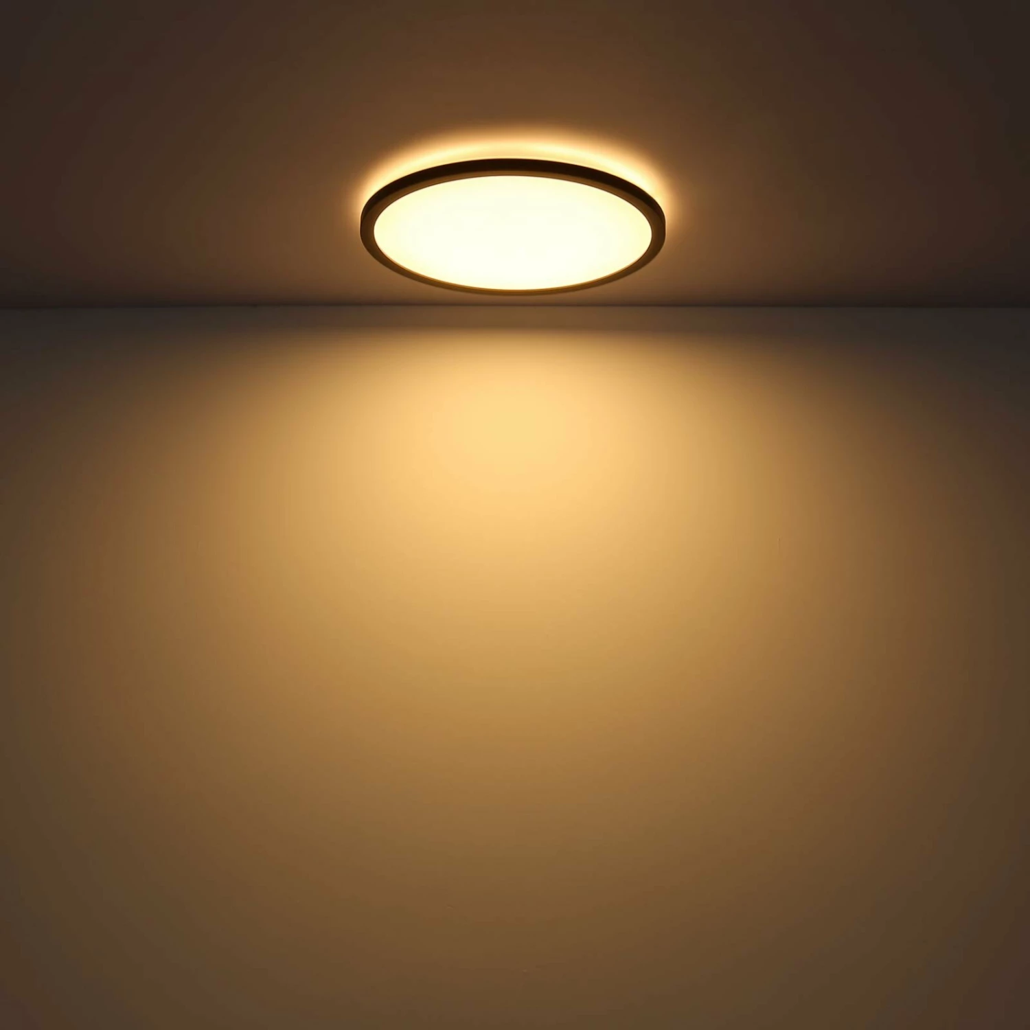 Diese runde LED-Panelleuchte in einem schlichten und unauffälligen Design passt in jeden Einrichtungsstil. Der Rahmen in Schwarz wirkt besonders edel aufgrund des satinierten Kunststoffs. Über einen Wandschalter ist die Deckenleuchte 3-stufig dimmbar, sodass die ideale Einstellung eingenommen werden kann.