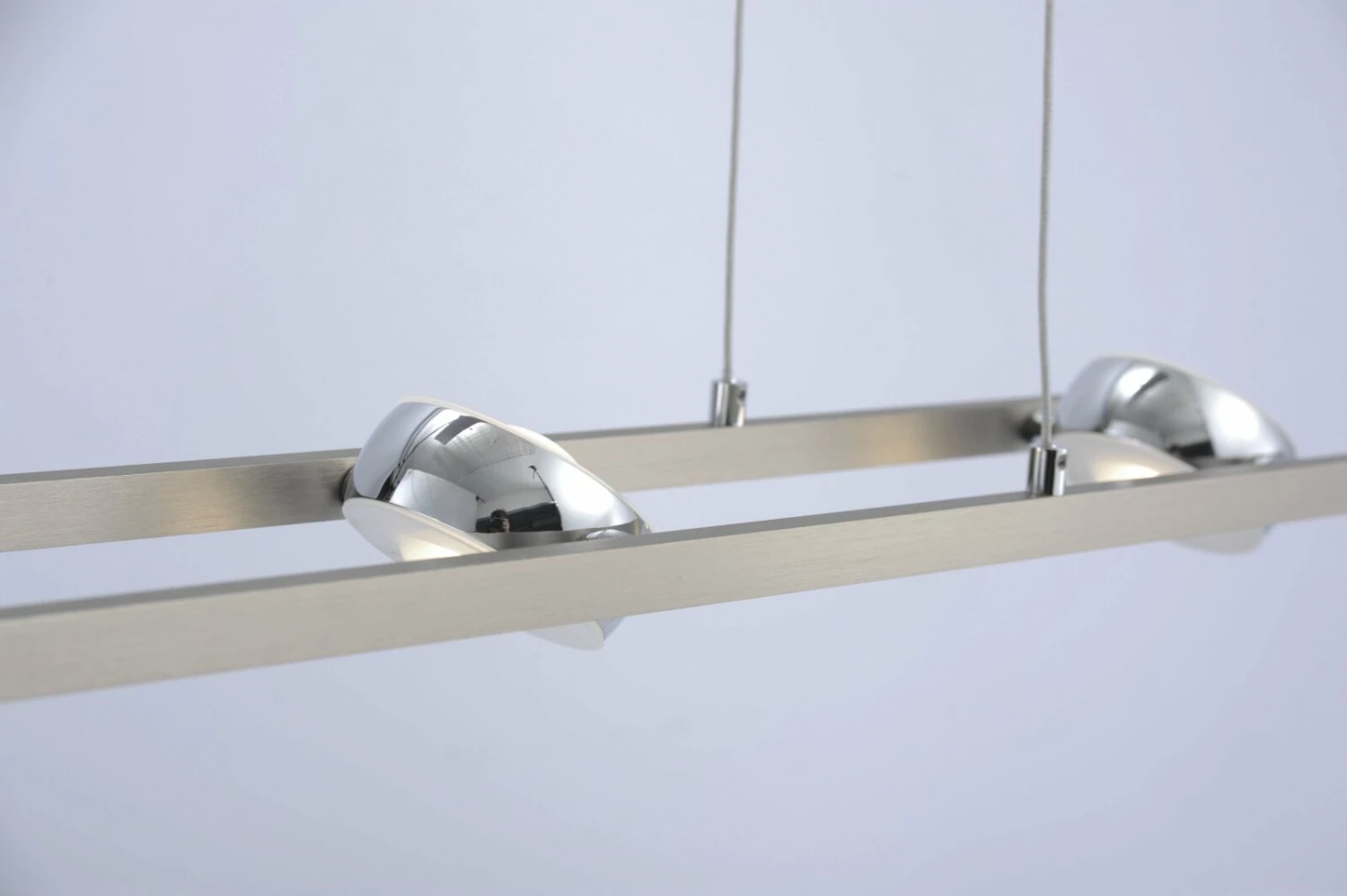 Die LED-Pendelleuchte präsentiert sich in einem optisch ansprechenden Weiß, kombiniert mit stilvollen Metallelementen. Angebracht über Ihrem Küchentisch sorgen acht Leuchtmittel für ein angenehmes Licht und genug Helligkeit.