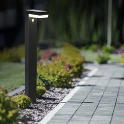 Die LED-Solar-Außensockelleuchte FILIUS ist mit einem Bewegungsmelder ausgestattet. Dieser erlaubt dementsprechend beispielsweise einen Einsatz vor Ihrer Haustür, um Ihren Gästen im Dunklen den Weg zu weisen.