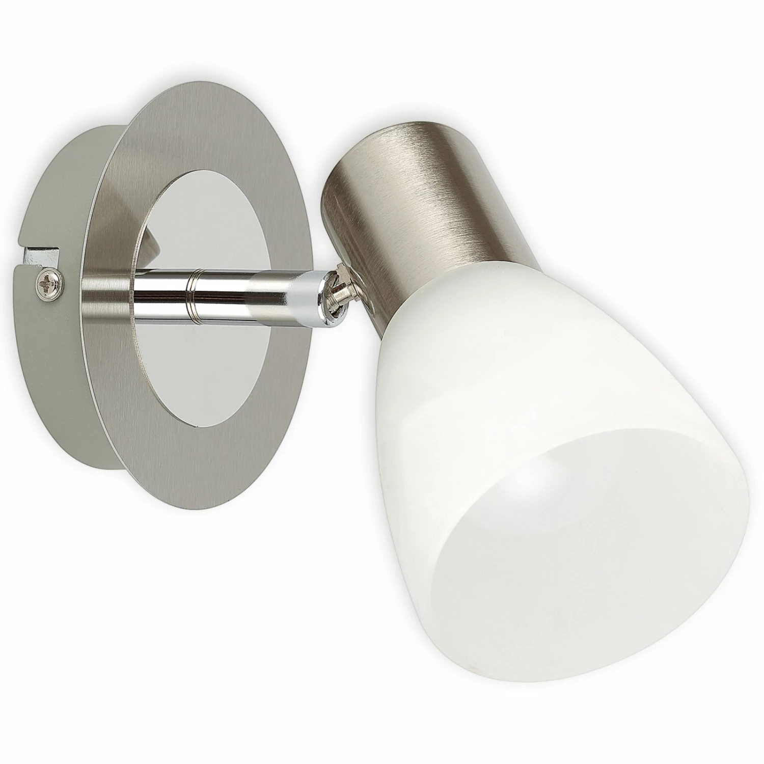Dieser LED-Spot ist mit einem warmweißen Leuchtmittel ausgestattet. Der Schirm ist weiß marmoriert und die Halterung aus Metall in mattem Nickel gehalten. Die runde Form ist besonders modern und wirkt auch ausgeschaltet besonders schick.