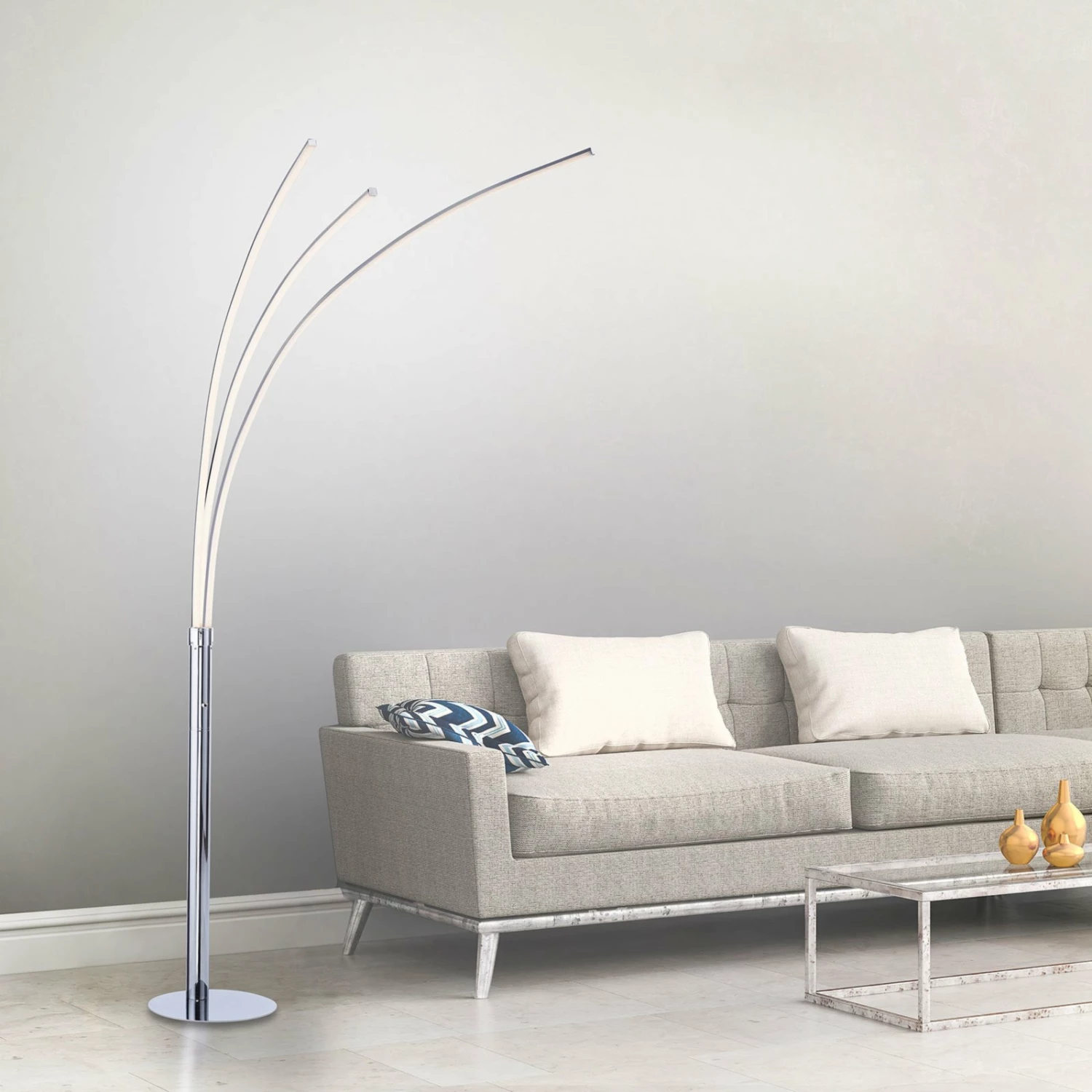 Diese moderne LED-Stehleuchte in Chrom überzeugt durch ihre Optik. Sie ist 3-flammig und leuchtet Ihren Wohnraum großzügig aus. Optisch ist diese LED-Stehleuchte ein echter Hingucker.