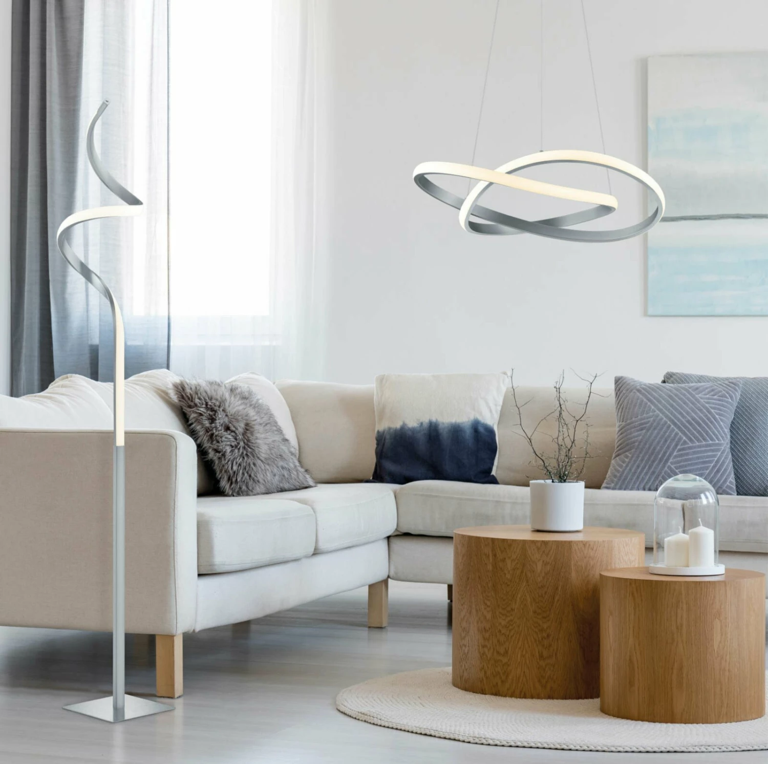 Die ausgefallene geschwungene Form der Leuchte macht die Leuchte zu einem echten Hingucker, die der Räumlichkeit das gewisse Etwas verleiht. Sie überzeugt aber nicht nur durch das Design, sondern auch durch die Funktionalität. Über einen Sensor können Sie die Leuchte ganz einfach dimmen. Eine Memoryfunktion merkt sich die letzten Einstellungen.