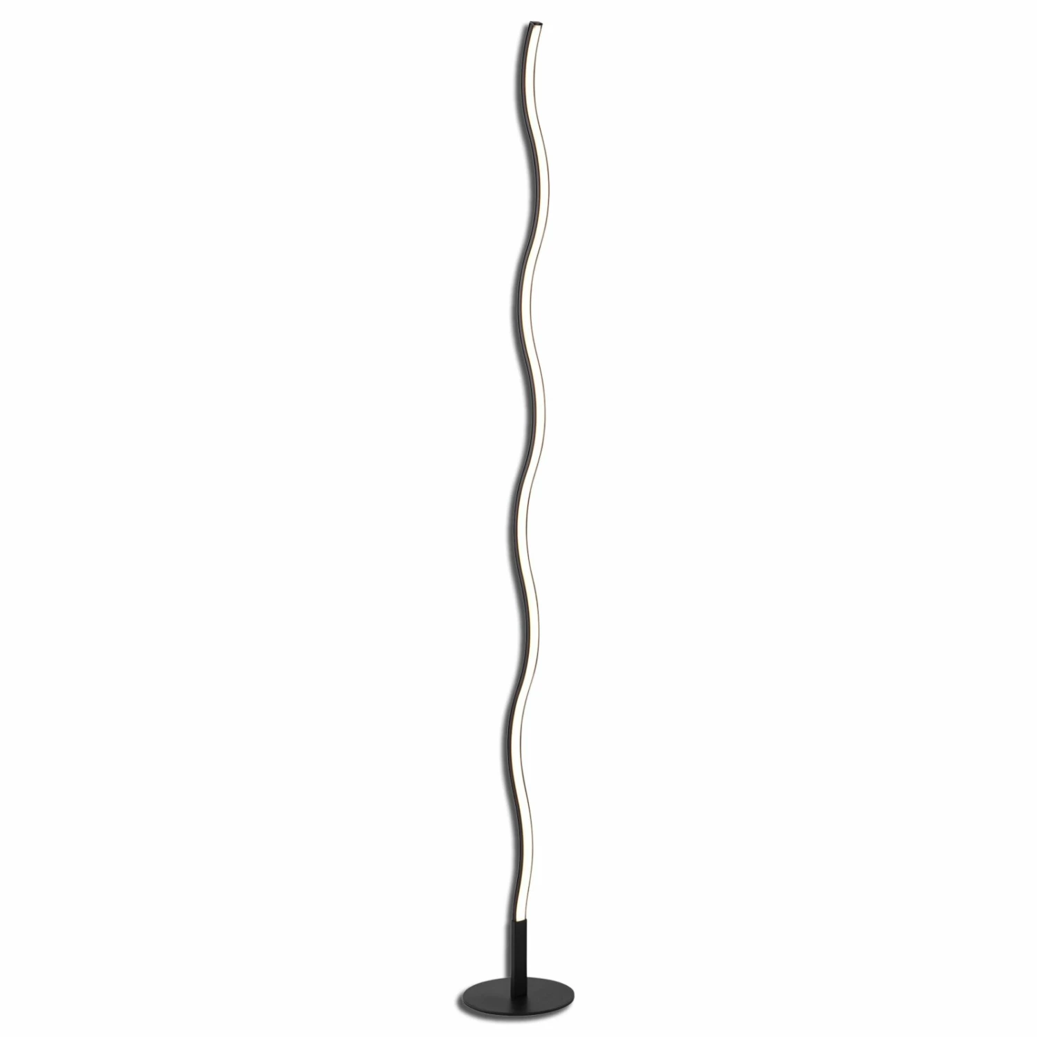 Geschwungene LED-Stehleuchte in Schwarz, die durch ihr modernes Design überzeugt und zudem auch als dekoratives Element in Ihrem Wohnraum dient. Das warmweiße Licht taucht jeden Raum in ein wohliges Ambiente.