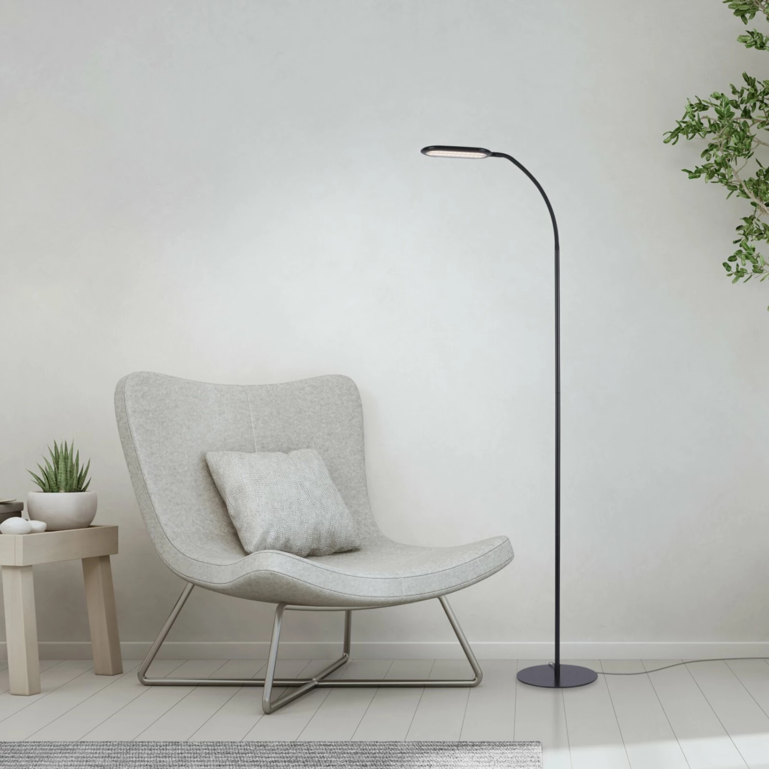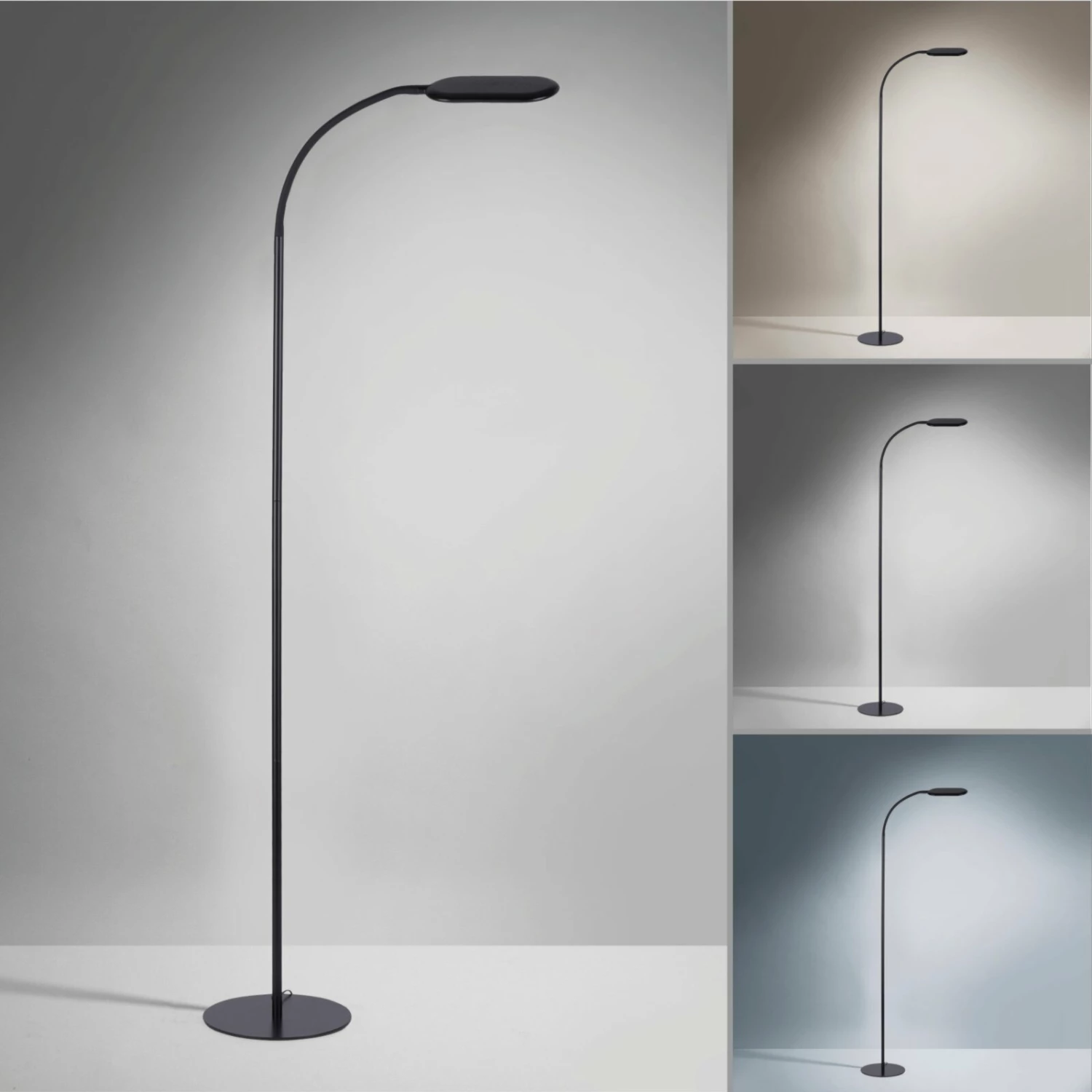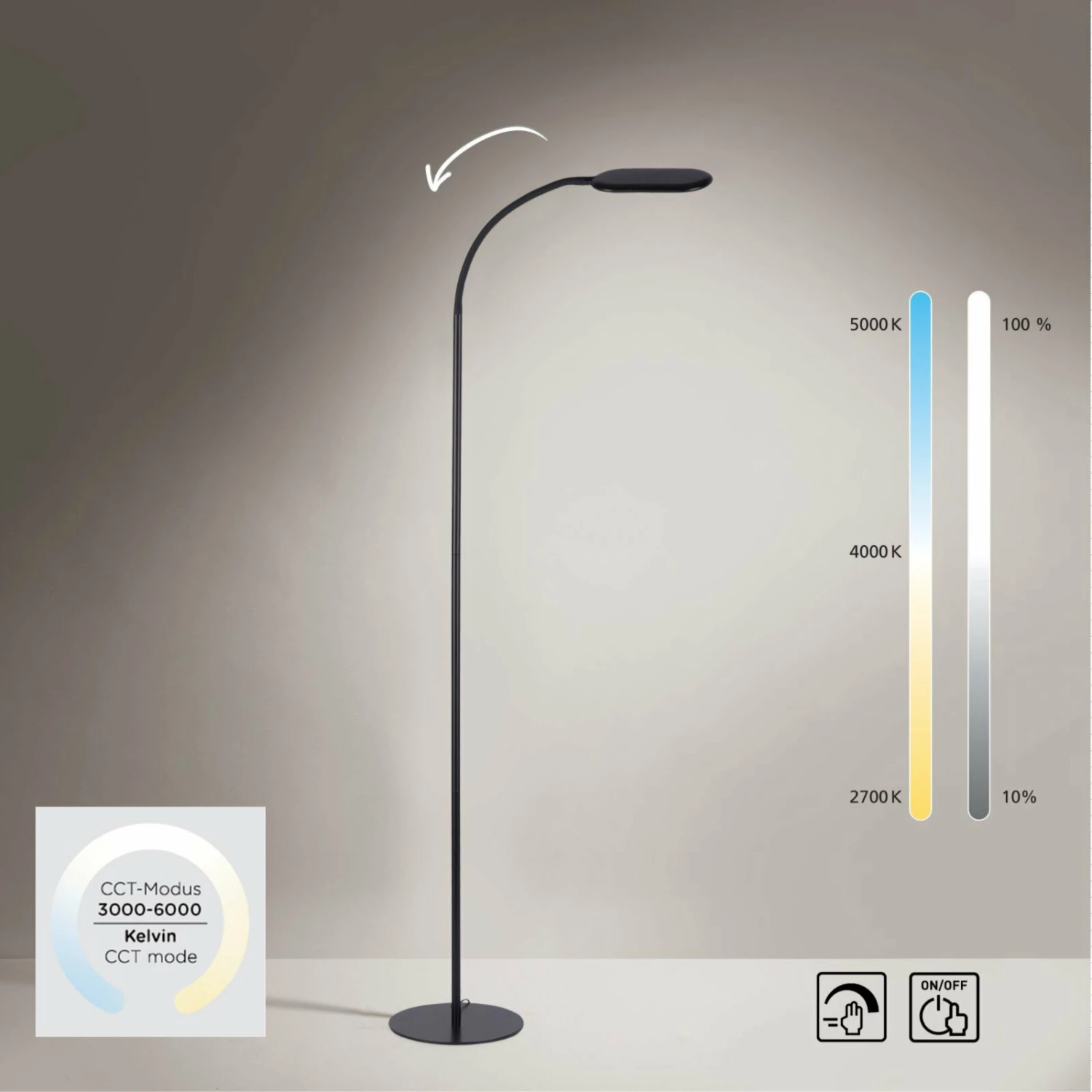 Diese LED-Standleuchte bietet ein angenehmes Lichtbild für jede Wohnumgebung. Die Farbtemperatur sowie die Höhe sind variabel. Die aus Eisen und Kunststoff bestehende Standleuchte ist zudem dimmbar.