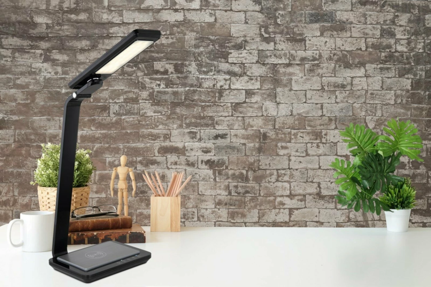 Eine funktionale LED-Tischleuchte, die neben vielen nützlichen Eigenschaften auch noch mit einem modernen und schlichten Design überzeugt: Dimmbar per einfacher Touchbedienung sowie mit der Wireless-Charging-Funktion ausgestattet, lässt sie sich super einfach bedienen und ist dabei noch multifunktional. Die Höhe beträgt etwa 66 cm.