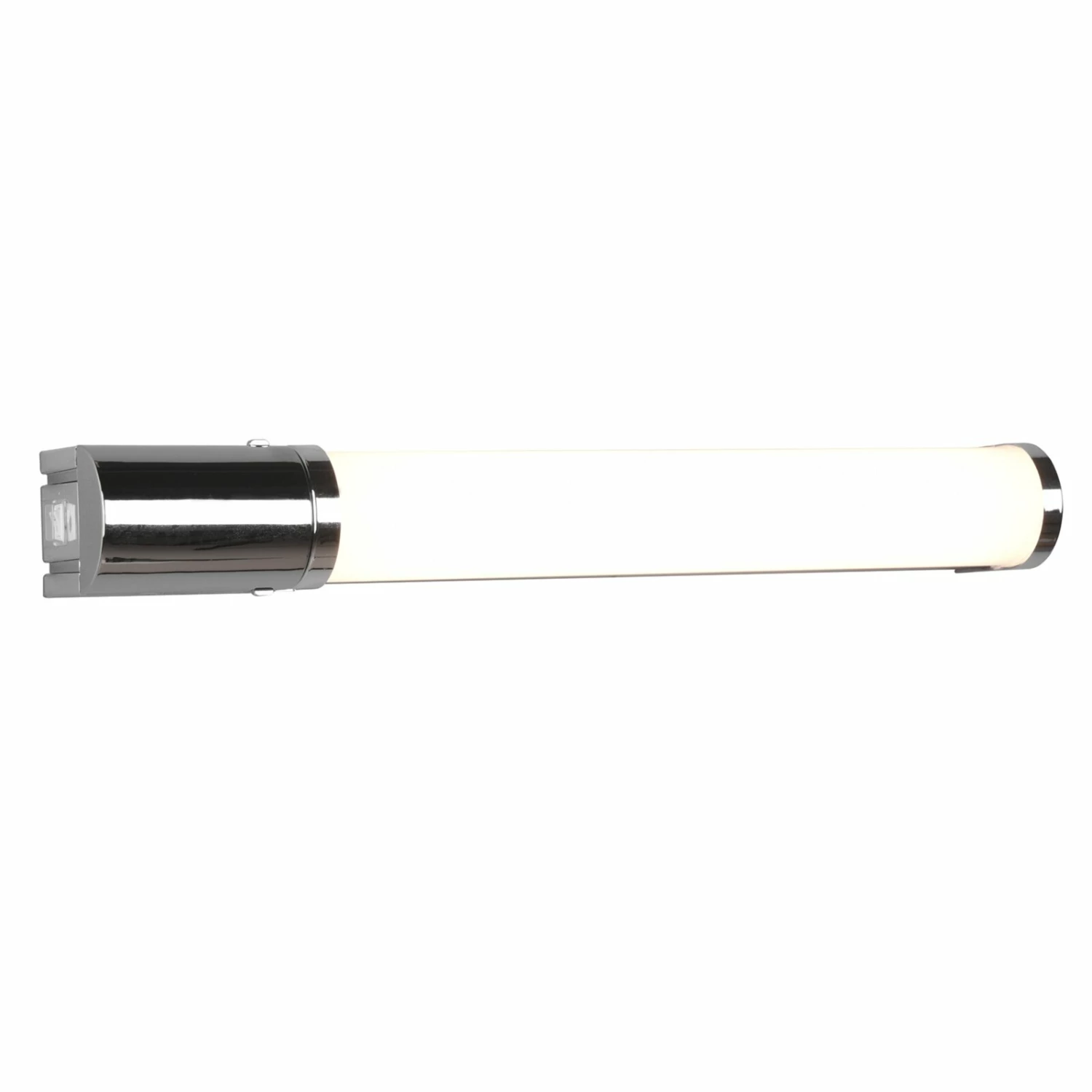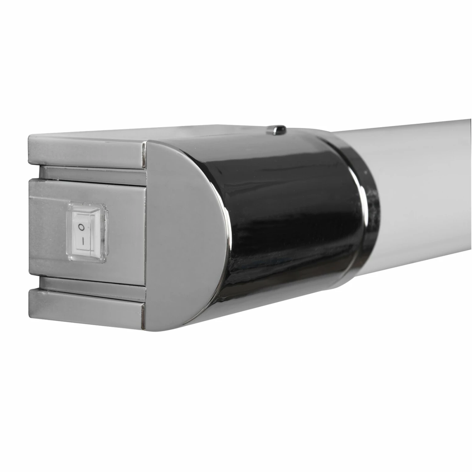 Die LED-Wandleuchte ist mit einer praktischen Steckdose ausgestattet und eignet sich somit bestens für die Küche über einer Arbeitsplatte oder für das Badezimmer, da sie gegen Spritzwasser geschützt ist.
