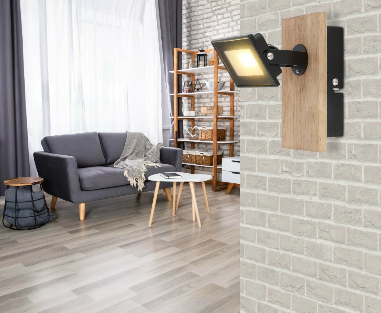 Dieser LED-Wandstrahler lässt jedes Herz durch die stilvolle Kombination aus schlichtem Holz und robustem schwarz-matten Metall höher schlagen. Außerdem besitzt sie einen schwenkbaren Strahler, der mit einem 5 Watt starken LED-Leuchtmittel und satiniertem Glas versehen ist. Durch die warmweiße Fabtemperatur von 3000 Kelvin wird für eine angenehme Atmosphäre gesorgt.
