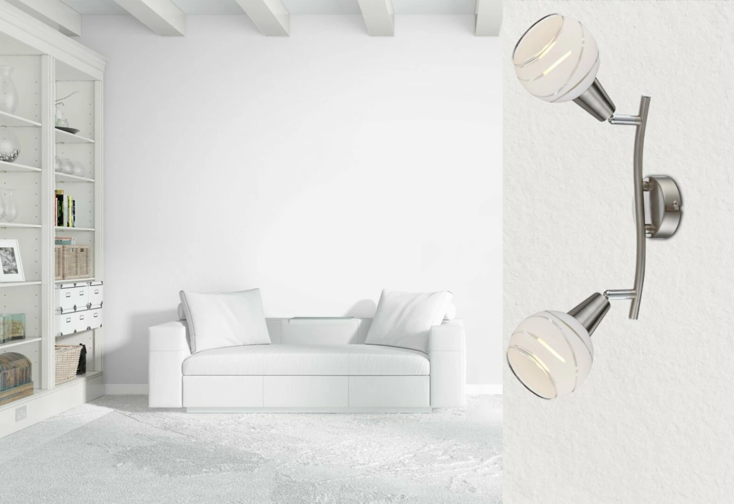 Dieser LED-Wandstrahler überzeugt durch sein Gestell in Nickel matt und den Schirmen aus satiniertem Glas. Der Strahler kann sowohl als Wandleuchte, als auch als Deckenleuchte verwendet werden. Zwei LED-Leuchtmittel mit der Fassung E14 sind bereits im Lieferumfang enthalten und strahlen in einem schönen Warmweiß.
