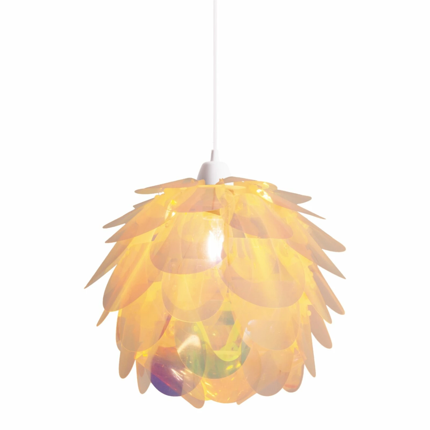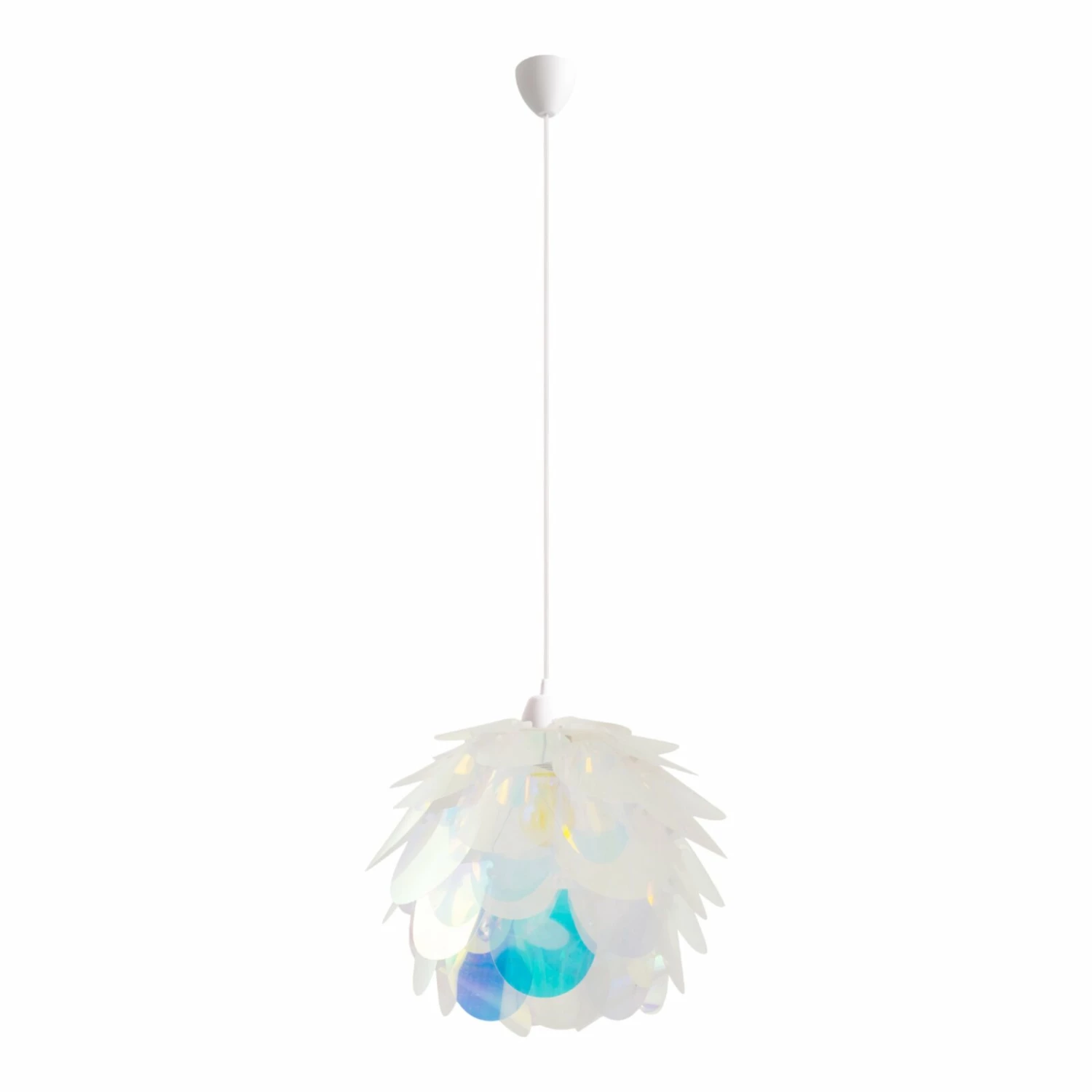 Die Pendelleuchte FORA überzeugt vollends durch den irisierenden Schirm. Dieses außergewöhnliche Spektakel, in dem der Lampenschirm in regenbogenfarben schimmert, verleiht Ihrem Raum die gewisse Extravaganz.