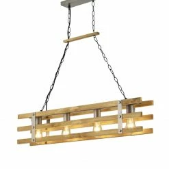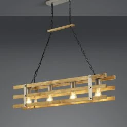 Pendelleuchte – Nickel antik – holzfarben – 4-flammig