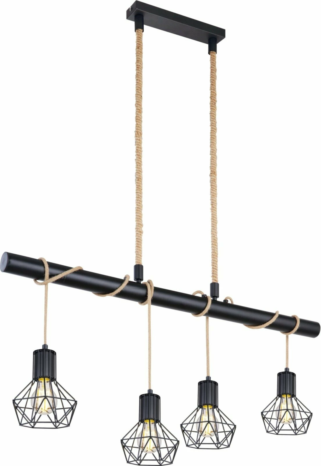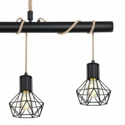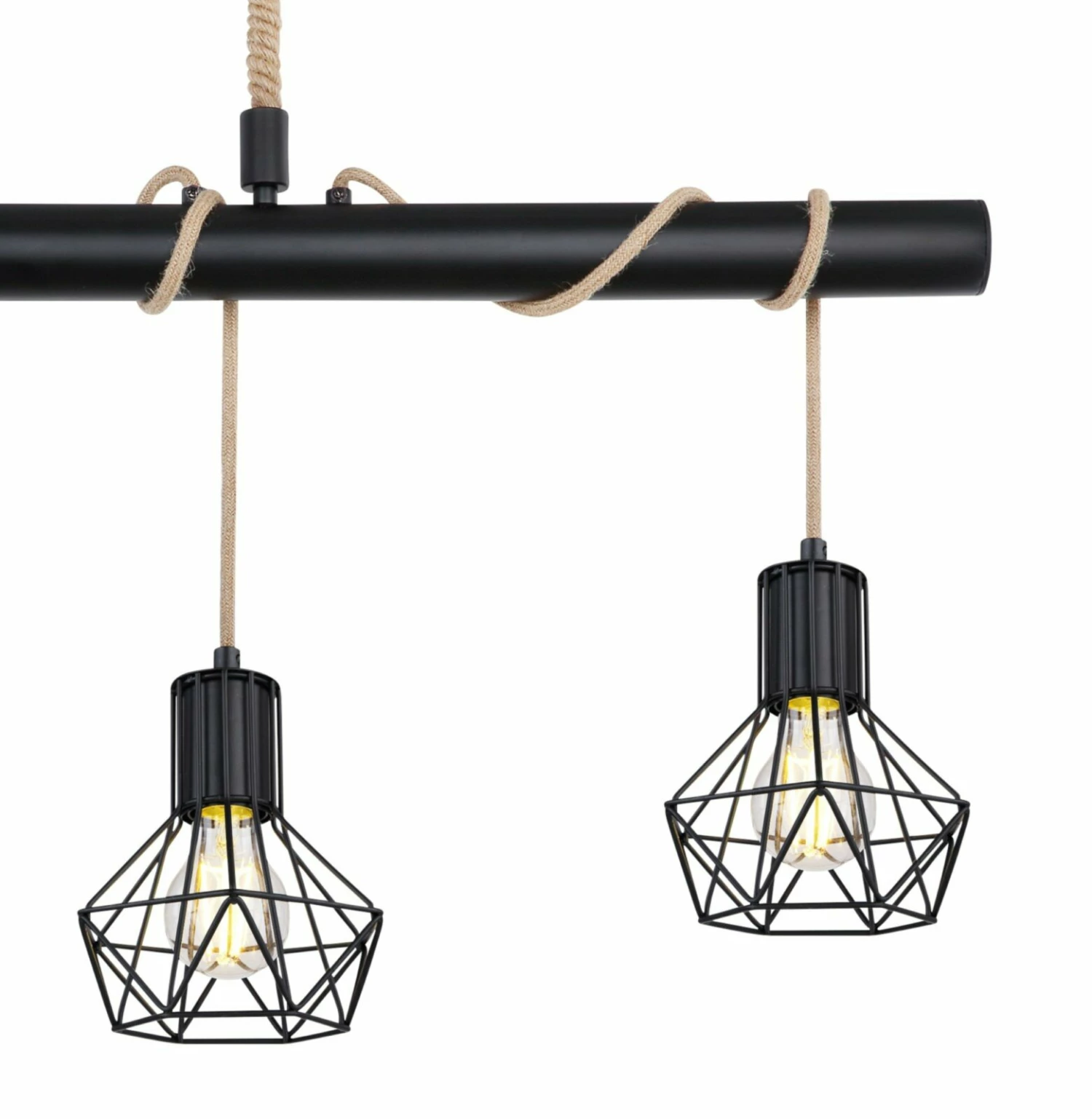 Verleihe deinem Ess- oder Wohnbereich mit dieser HÀngeleuchte eine elegante Aura. Durch die schwarzen diamantförmigen Metalgitter-Schirme und der modernen Hanfseiloptik zieht diese Pendelleuchte jeden Blick auf sich. Die Breite der Lampe betrÀgt etwa 100 cm.