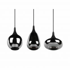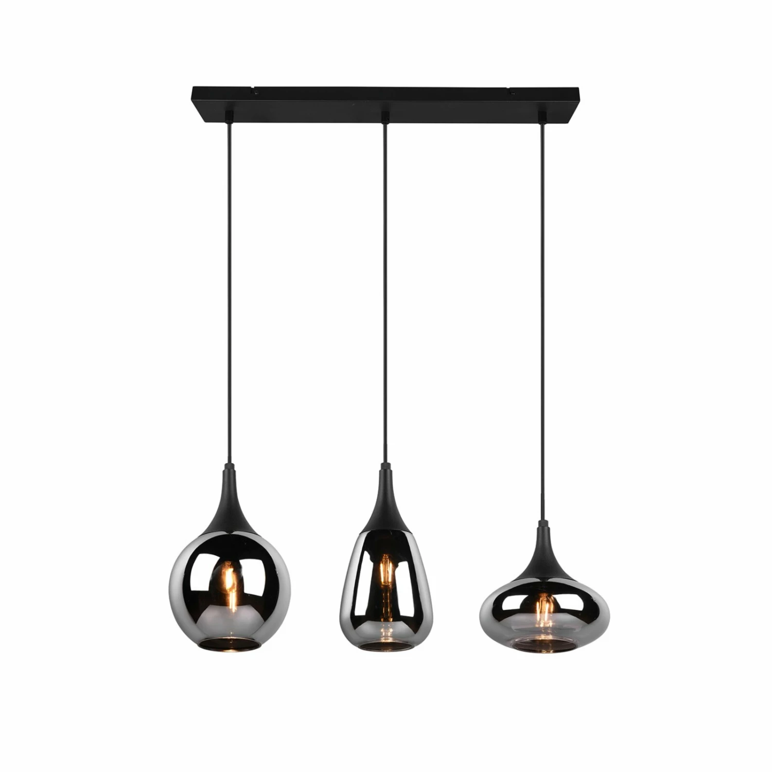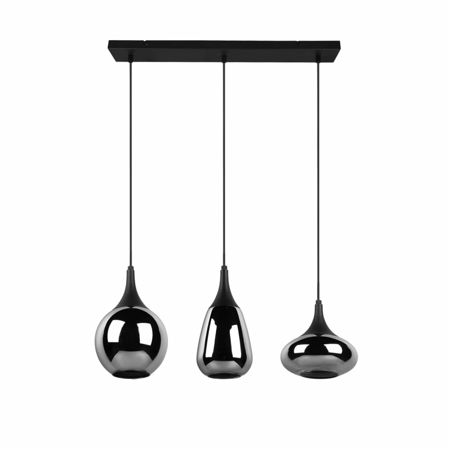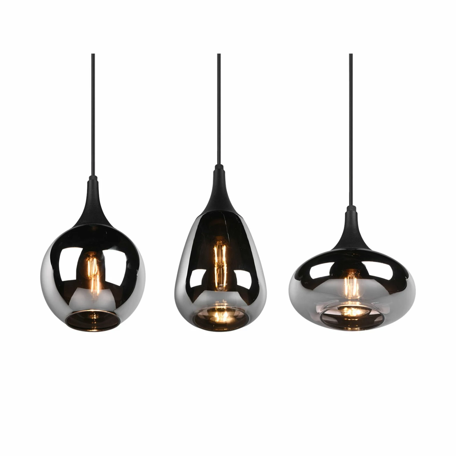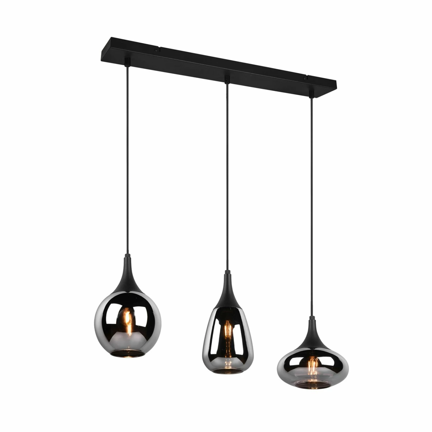 Pendelleuchte – schwarz – Glas bedampft – 3-flammig