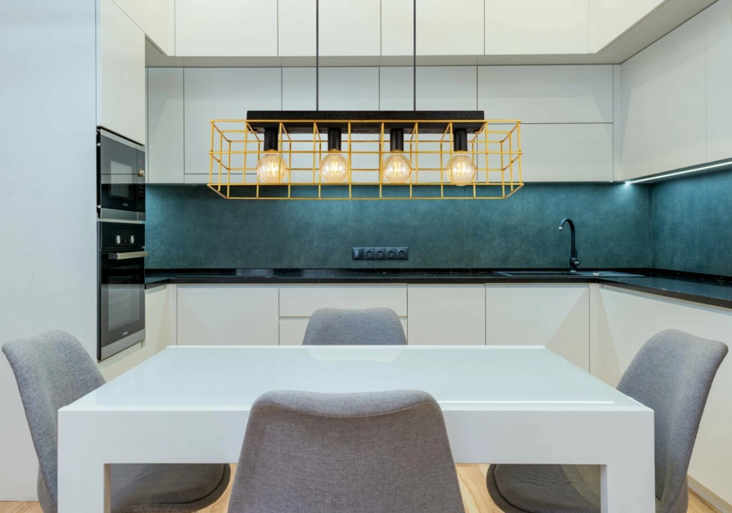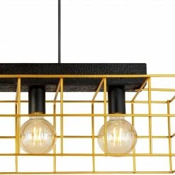 Die perfekte Mischung für ein stilvolles Design: Die Hängelampe begeistert durch das harmonische Zusammenspiel von geflammtem Holz und schwarzem Betonstahl-Gitter und lässt ihre Küche geschmackvoll und elegant aussehen. Die Breite beträgt etwa 90 cm.