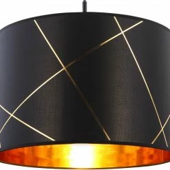 Pendelleuchte – schwarz – goldfarben – Metall-Textil