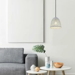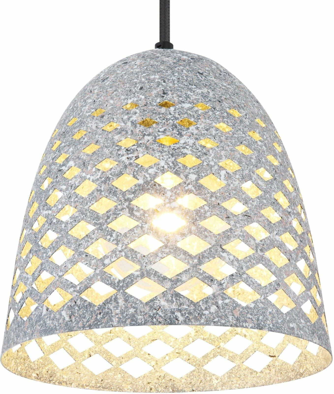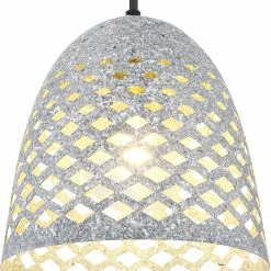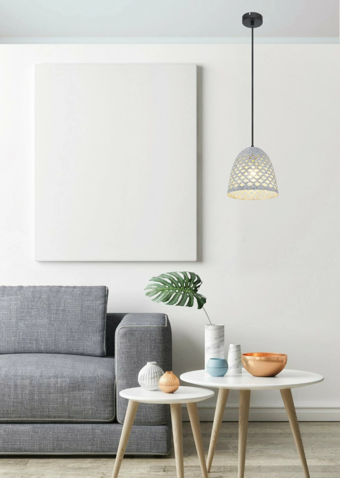 Diese Pendelleuchte eignet sich wunderbar für deinen Wohnraum, denn die Lampe charakterisiert sich aus einem runden, grauen Metallschirm und mit rautenförmigen Stanzungen, welche nach obenhin kleiner werden. Außerdem wird durch die Stanzungen ein wunderschönes Muster projiziert, wodurch eine stimmungsvolle Atmosphäre ausgestrahlt wird.