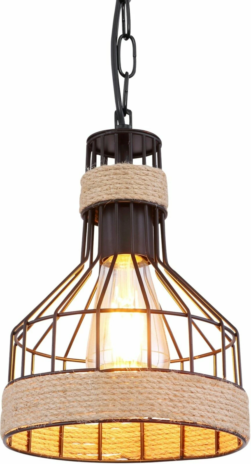 Die Pendelleuchte in Schwarz matt und Braun ist ein echtes Meisterwerk und wird dich garantiert begeistern, denn aufgrund des Hanfseils und der schwarzen Kette sorgt diese Pendelleuchte fĂŒr eine moderne AtmosphĂ€re die bewundernswert ist.