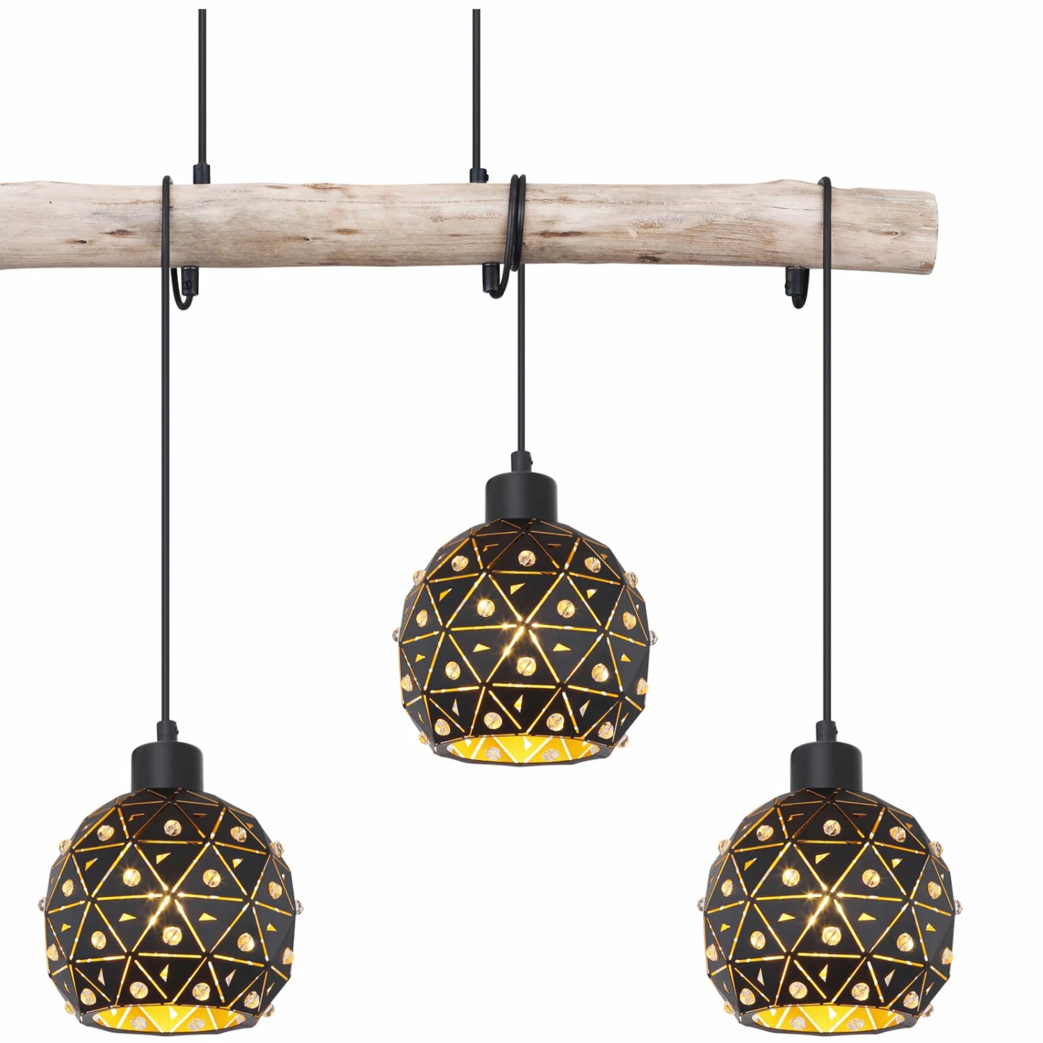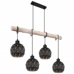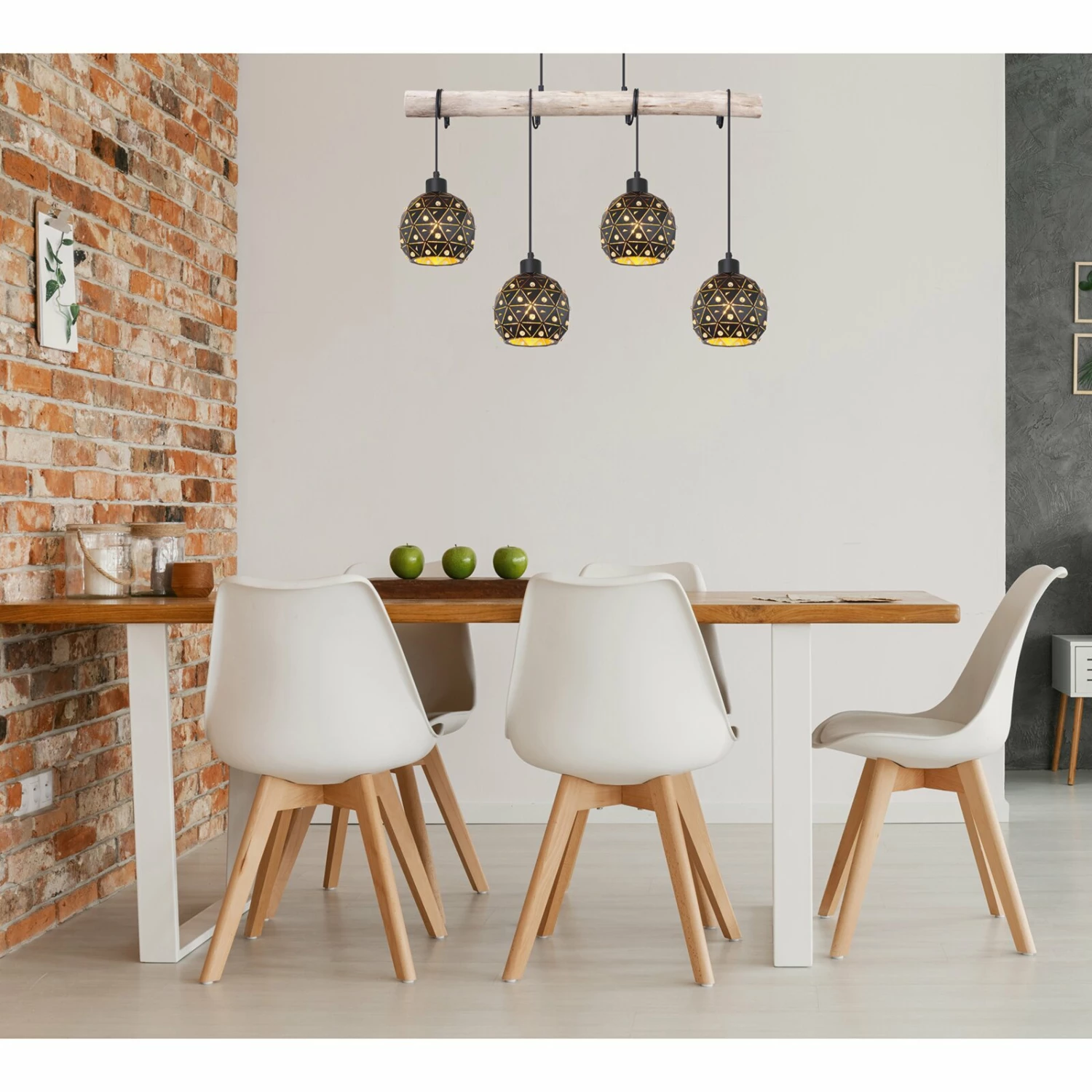 Pendelleuchte – schwarz-matt – Holz – 4-flammig