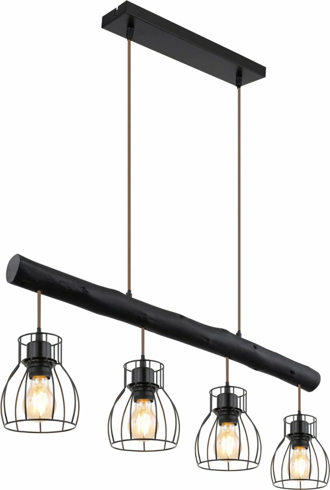Pendelleuchte – schwarz matt – Holzbalken – 4-flammig