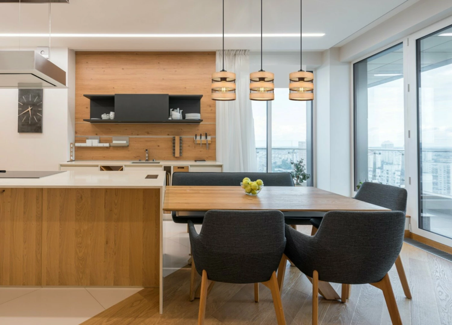 Pendelleuchte – schwarz matt-holzfarben – Holz – 120 cm