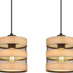 Diese Pendelleuchte in Schwarz matt und Holzfarben sieht wundervoll aus und sorgt für ein modernes Ambiete in deinem Wohnraum. Vor allem der Schirm aus dem Metallgeflecht und dem Holz macht diese Lampe zu einem echten Prachtstück. Die Lampe ist etwa 75 cm breit, 120 cm hoch und 18 cm tief.
