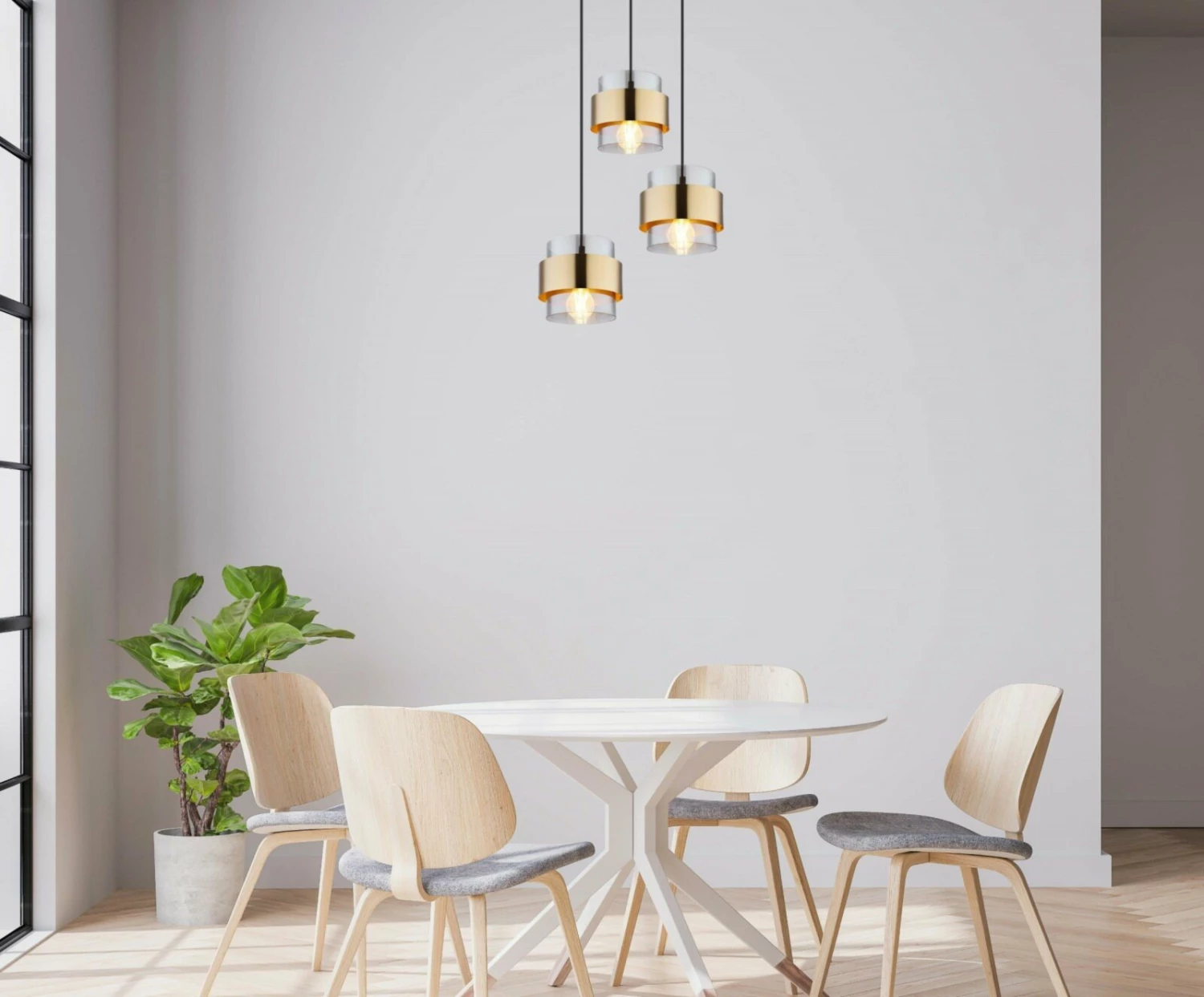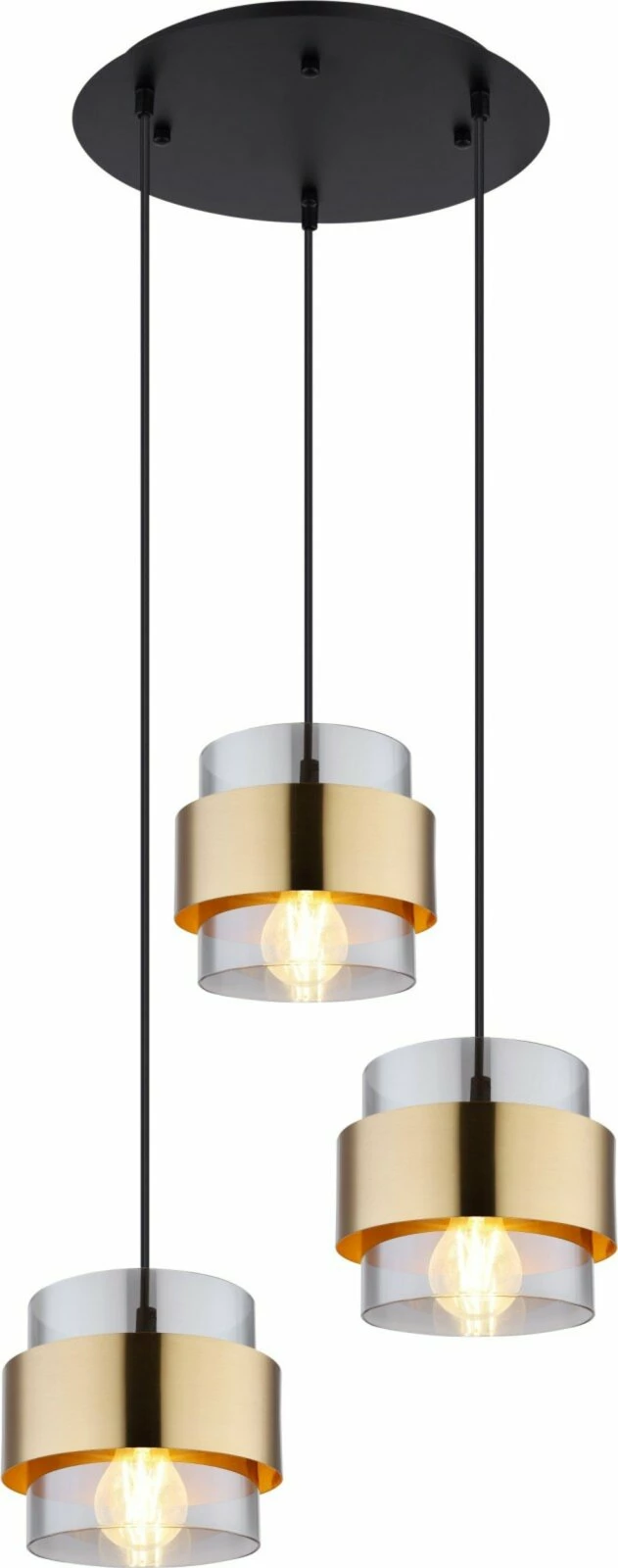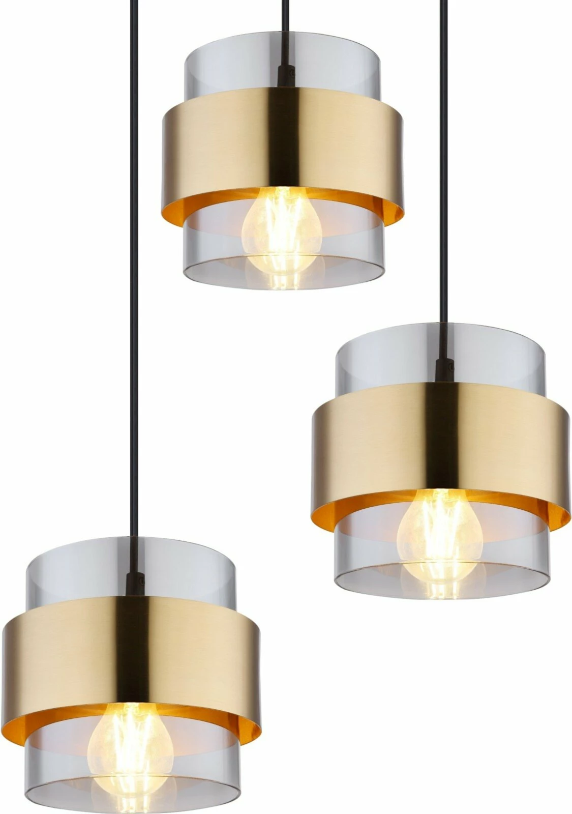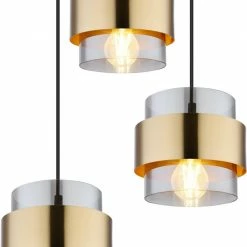 Die Pendelleuchte sorgt wegen der Messingringe und der rauchfarbigen GlĂ€ser fĂŒr ein avantgardistisches Design, welches dir und deinen GĂ€sten garantiert gefallen wird.Â