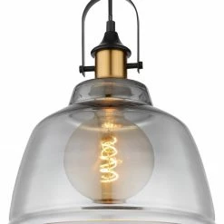 Diese Pendelleuchte ist eine äußerst moderne Lampe, denn wegen des rauchfarbendes Glases sticht sie jedem ins Auge. Sie ist etwa 30 cm breit, 120 cm hoch und 30 cm tief.