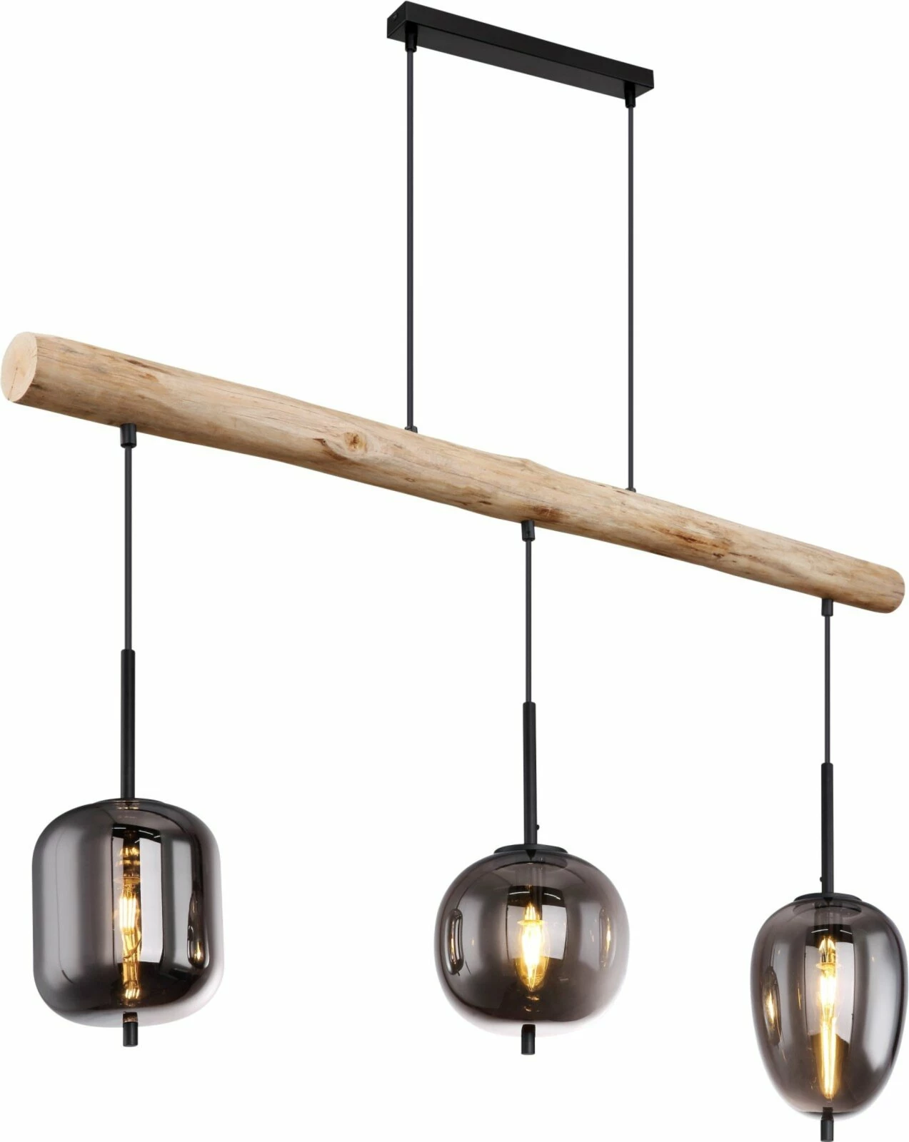 Die 3-flammige Pendelleuchte überzeugt durch ihr Design. Sie passt perfekt in Ihrem Wohn- und Essbereich. Sie können diese Pendelleuchte mit drei Leuchtmitteln E14 mit maximal 40 Watt bestücken. Die Breite der Lampe beträgt etwa 100 cm.