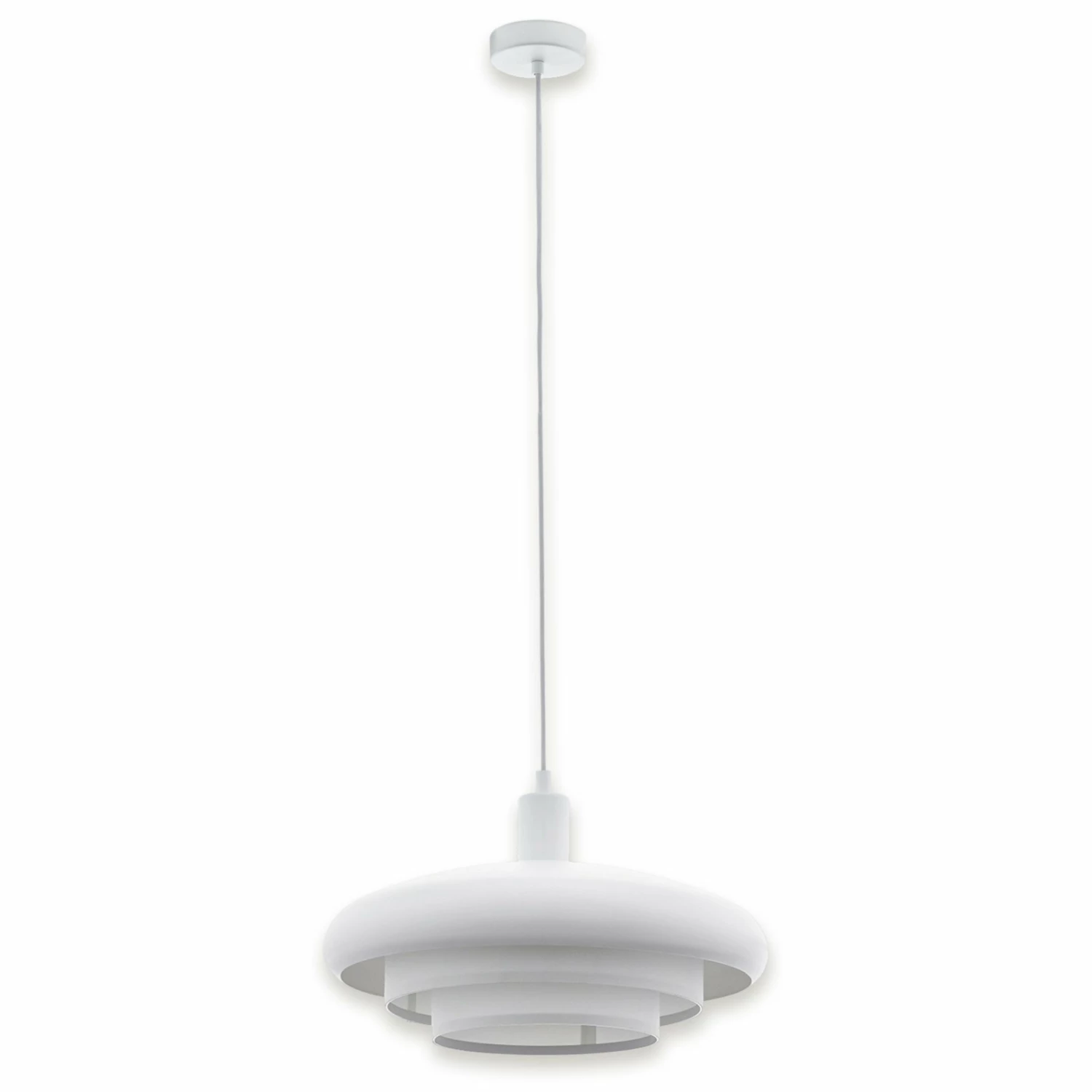 Die weiße Pendelleuchte wird über Ihrem Ess- oder Wohnzimmertisch eine tolle Figur machen und für reichlich Licht in Ihrem Zimmer sorgen. Der 45 Zentimeter breite Schirm wurde aus Stoff und Metall gefertigt und verfügt über ein raffiniertes Design.