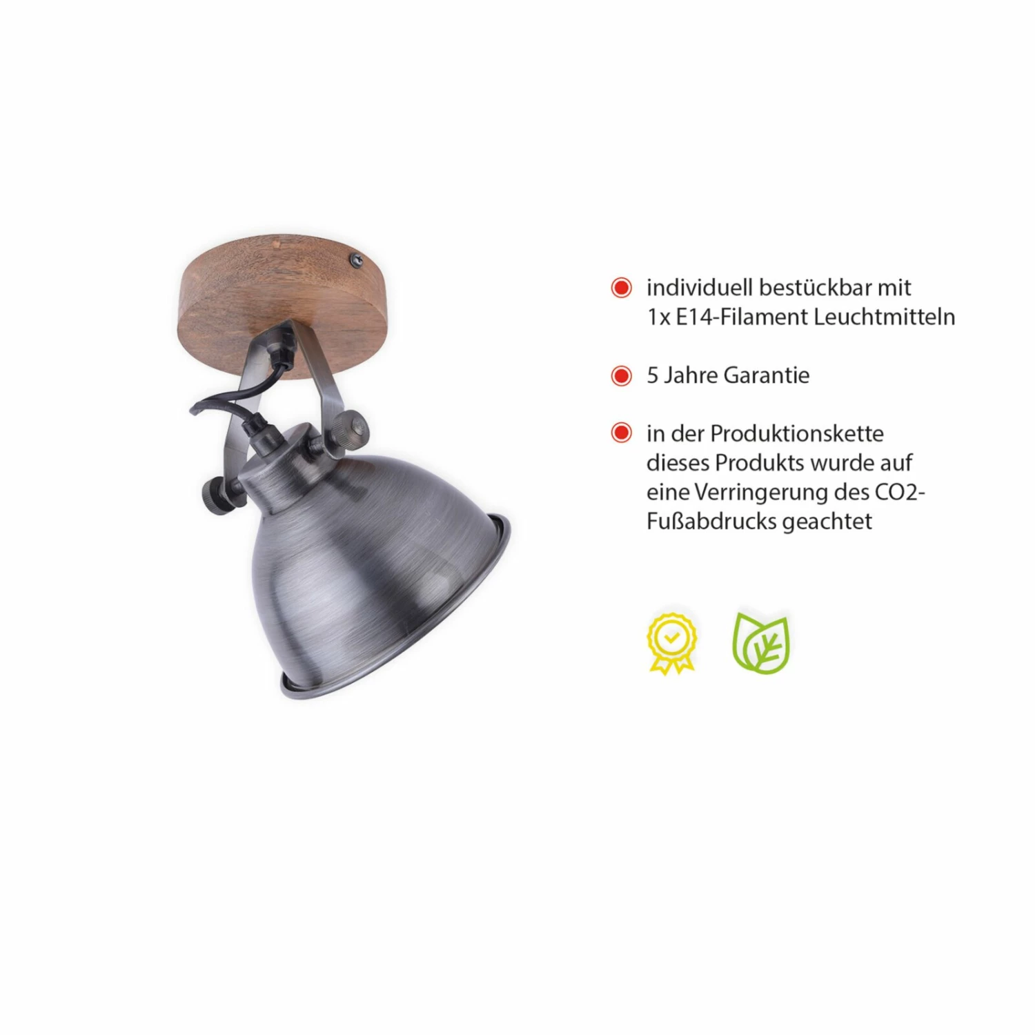 Dieser Retro-Spot im Industrial-Stil setzt schöne Akzente in Ihren Wohnräumen. Mit einem E14-Leuchtmittel kreieren Sie eine angenehme Atmosphäre.