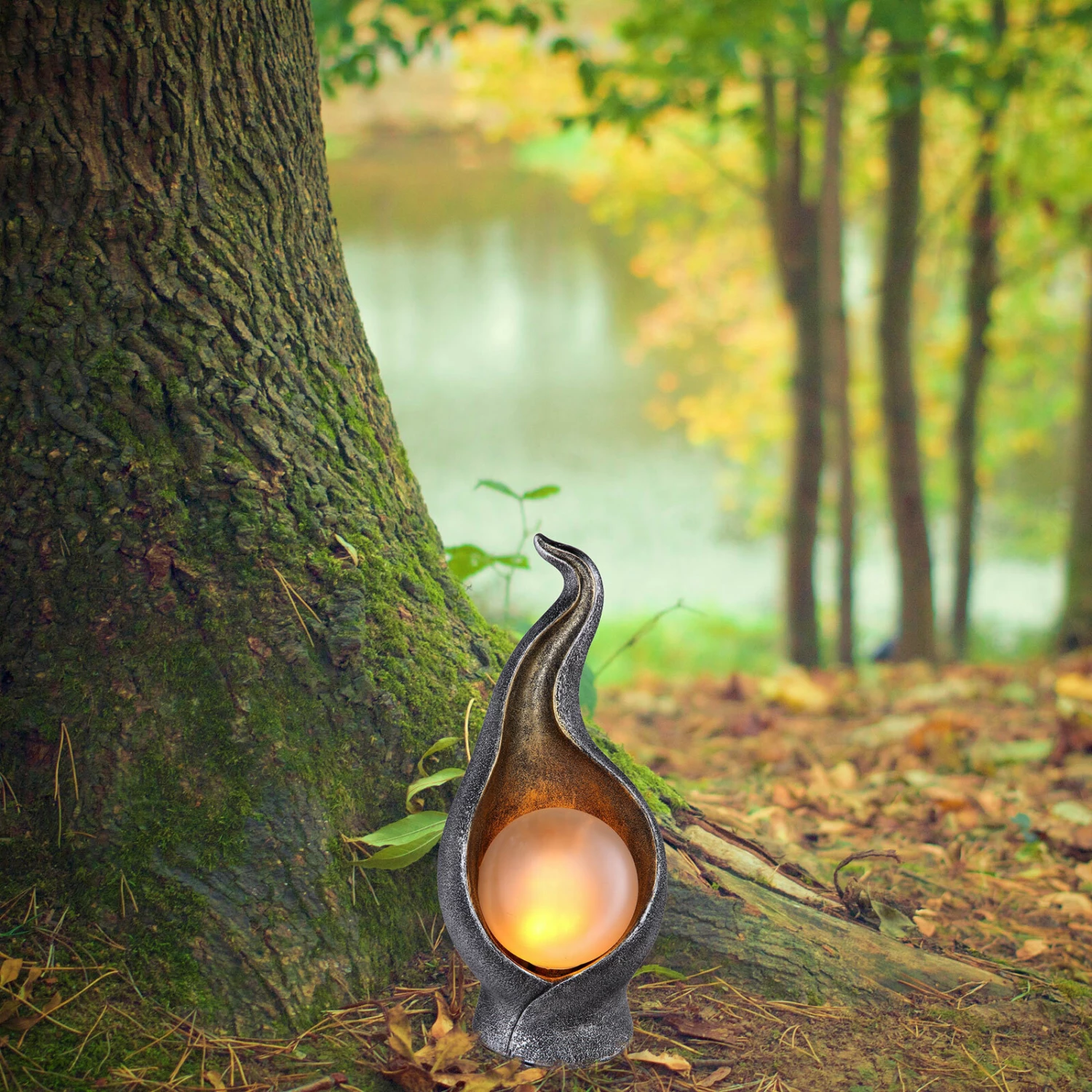Diese Solar-LED Dekoleuchte verfügt über einen Flammeneffekt und versprüht eine gemütliche Atmosphäre.