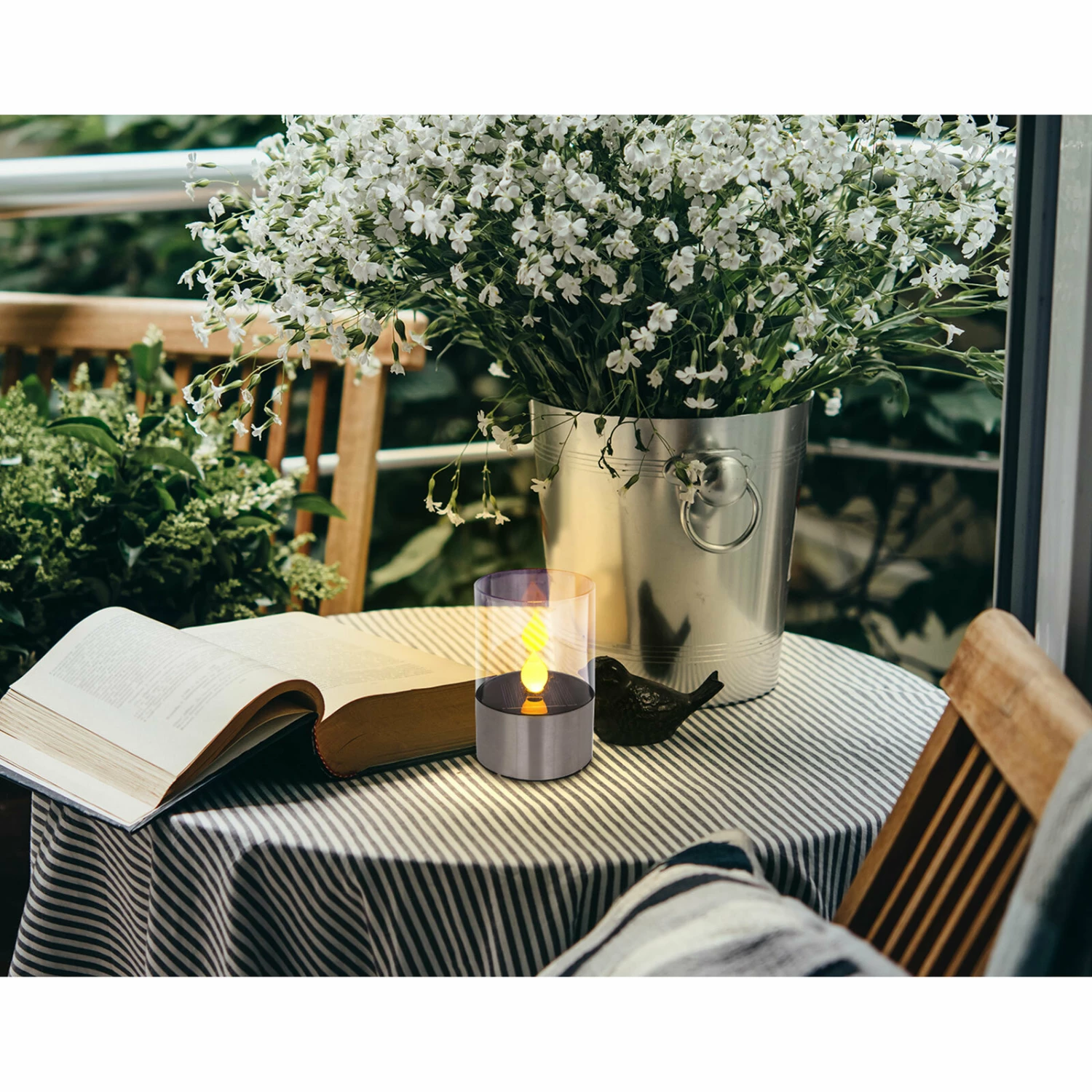 Solar-LED-Dekoleuchte – silber – mit Flammeneffekt – 11 cm hoch