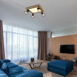 Das Gestell des 1-flammigen Wandstrahlers ist eine Kombination aus Holz und Eisen. Dies lässt die Leuchte rustikal, als auch modern wirken und passt in jegliche Wohnstile. Ebenfalls ist diese Leuchte individuell dreh- und schwenkbar. Im LIeferumfang ist kein Leuchtmittel enthalten.
