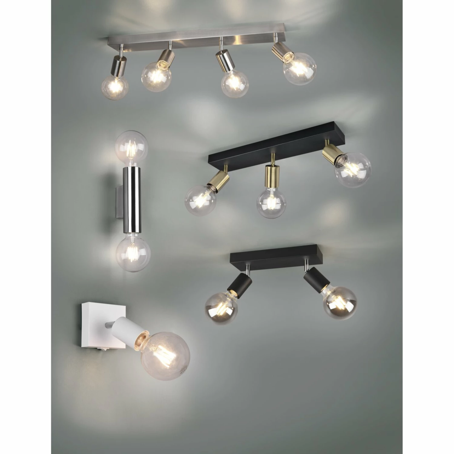 Der 2-flammige Spotbalken in Schwarz überzeugt mit einem eleganten und zugleich edlen Design. An der dafür vorgesehenen Stelle im Deckenbereich angebracht, richten Sie die schwenkbaren Spots nach Ihren Vorstellungen aus. Sie setzen die gewünschten Lichtakzente beispielsweise im Bereich von Bildern, Vasen oder Skulpturen. Welche Art Atmosphäre im Raum entsteht, hängt von der Auswahl und dem Style der separat erhältlichen Leuchtmittel und deren Farbtemperatur ab. Benötigt wird ein E27-Sockel bis maximal 40 Watt. Dank der kompakten Bauform fügt sich die Metall-Deckenlampe in das vorhandene Ambiente ein. Der 2-flammige Spotbalken passt exzellent zu geradlinigen Einrichtungsstilen im Flur, in der Küche oder im Wohn- und Schlafbereich. Alternativ eignet er sich auch zur Montage an der Wand.