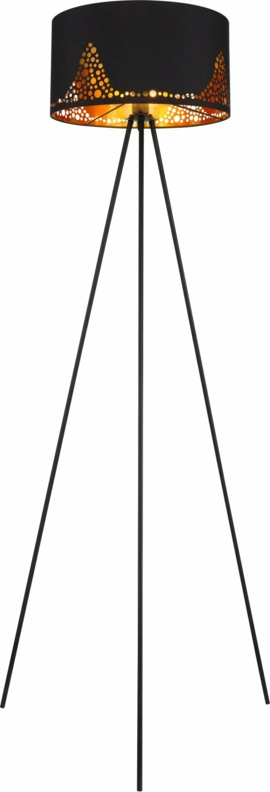 Die 3-beinige Standleuchte sieht wegen des Designs sehr modern aus und sorgt für eine edle Atmosphäre. Der Schirm der von innen goldfarbig ist und die darin enthaltenen Löchern bekräftigen die edle Atmosphäre. Alles in allem ist die Standleuchte ein echtes Highlight, welches Sie und Ihre Gäste erstaunen lässt.