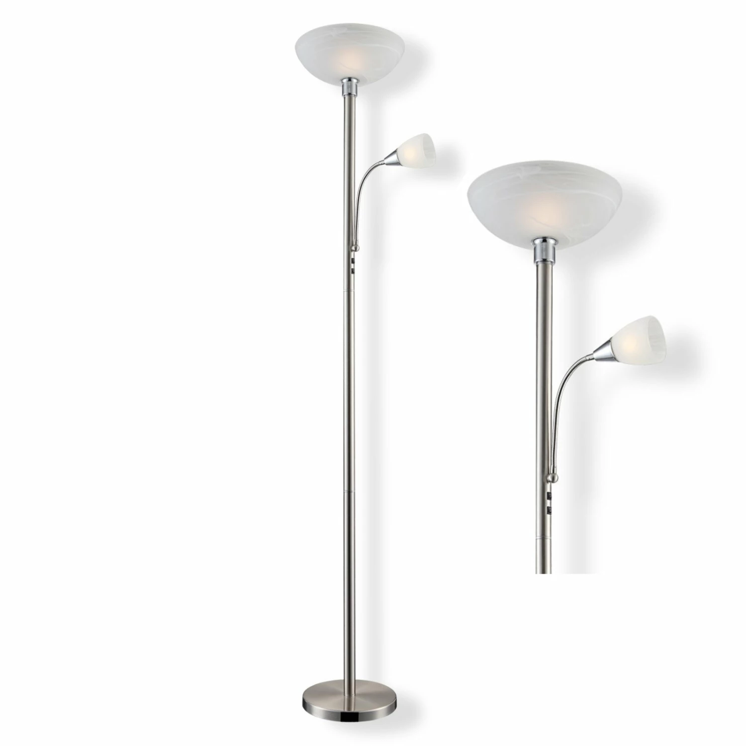 Diese elegante Stehlampe ist Deckenfluter und Leselampe zugleich. Beide Elemente lassen sich natürlich getrennt voneinander an- und ausstellen. Besonders schick ist das Design der Lampenschirme.