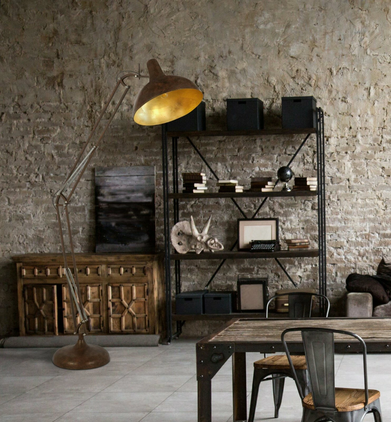 Diese Stehlampe in Rostfarben und Goldfarben wird dich garantiert überzeugen, denn neben den drei Gelenken die sie bestizt, strahlt sie eine moderne Atmosphäre aus. Sie ist etwa 130 cm breit, 217 cm hoch und 38 cm tief.
