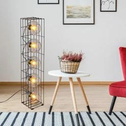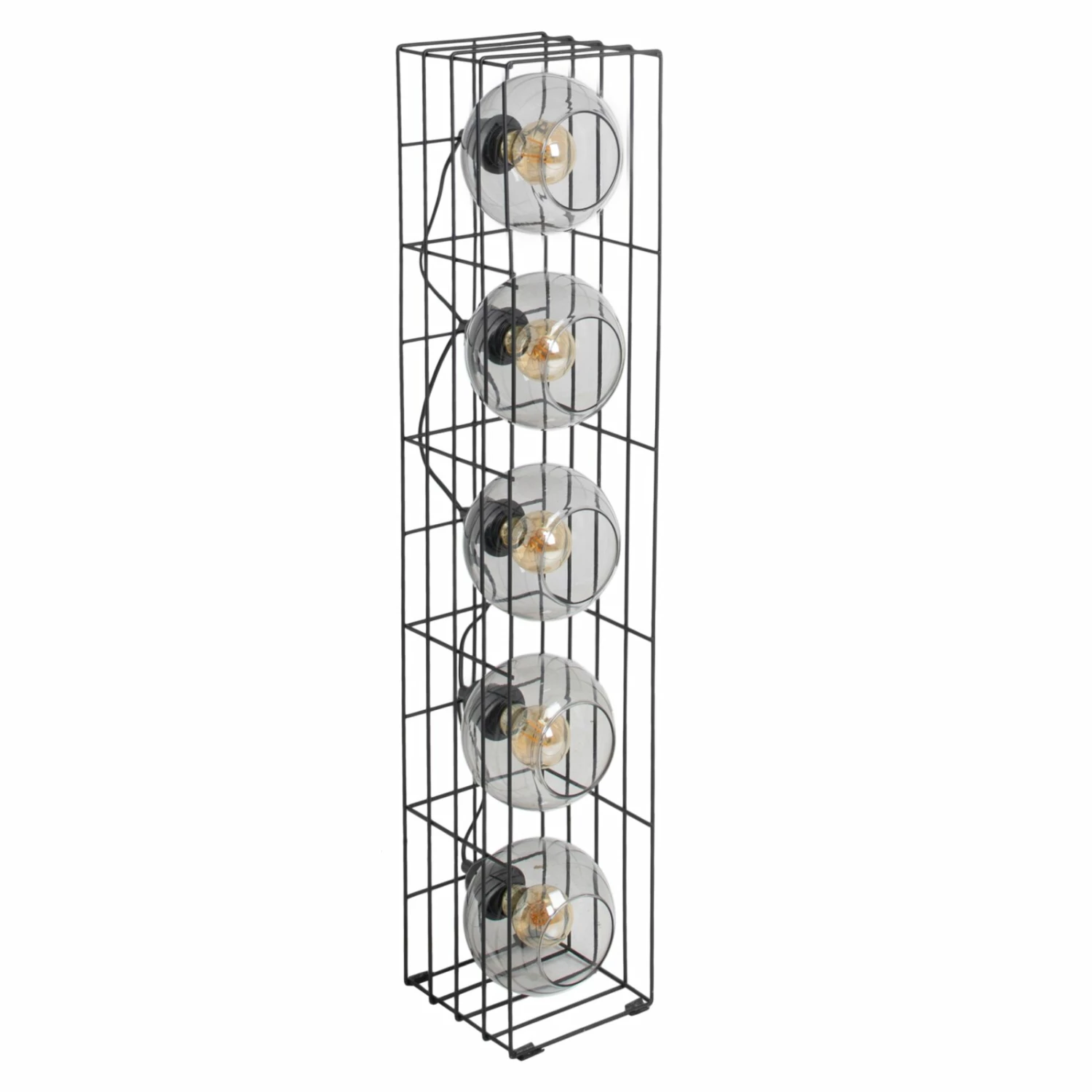 Diese moderne Glas-Stehleuchte CESTA verfügt über fünf Fassungen für E27-Leuchtmittel. Mit einer Höhe von etwa 95 cm ist die Stehleuchte ein toller Hingucker. Bringen Sie hiermit einen exklusiven Industrial-Stil in Ihr Zuhause. Das getönte Glas und das schwarze Metall lassen sich in jede Einrichtung optimal integrieren.