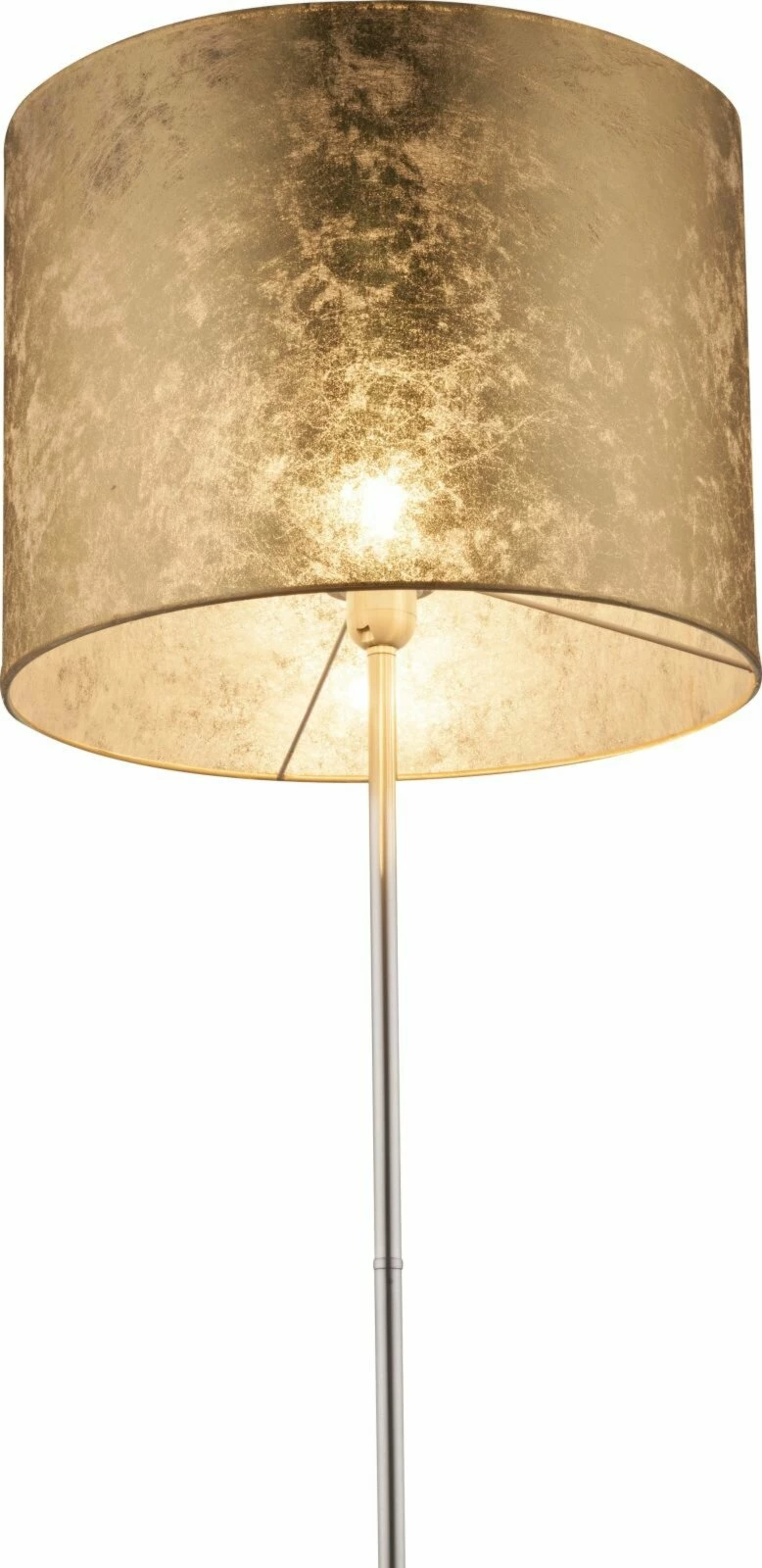 Stehleuchte in Nickel matt Optik, mit goldfarbenem Lampenschirm. Die Leuchte ist ein toller Blickfang und versprüht einen ganz besonderen Charme. Holen Sie sich dieses wunderschöne Detail in Ihren Wohnraum.