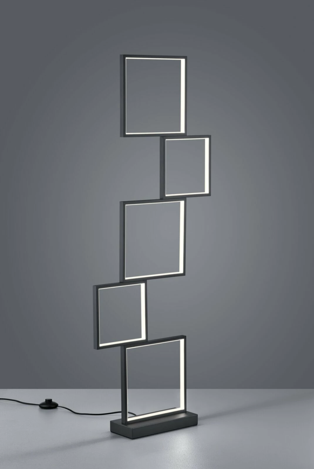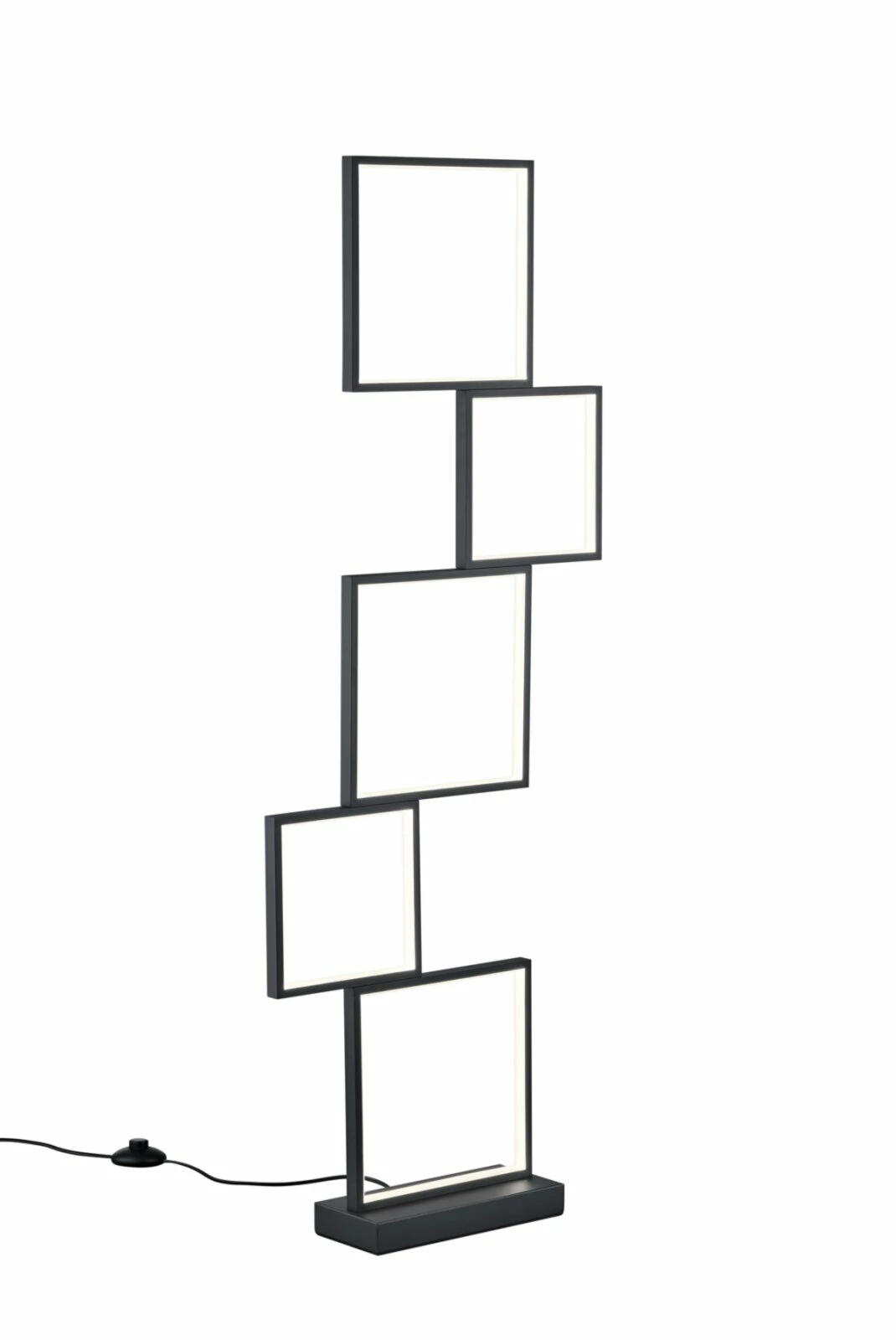 Diese Stehleuchte zieht mit ihrem modernen und dekorativen Design alle Blicke auf sich und zaubert ein modernes Flair in jeden Wohnraum – egal, ob ein- oder ausgeschaltet. Die Leuchte verfügt über einen Switch Dimmer, mit dem Sie die Helligkeit über einen Fußschalter steuern können. Mit einer Höhe von etwa 125 Zentimetern und seiner Farbgebung in mattem Schwarz überzeugt diese Leuchte auf ganzer Linie.
