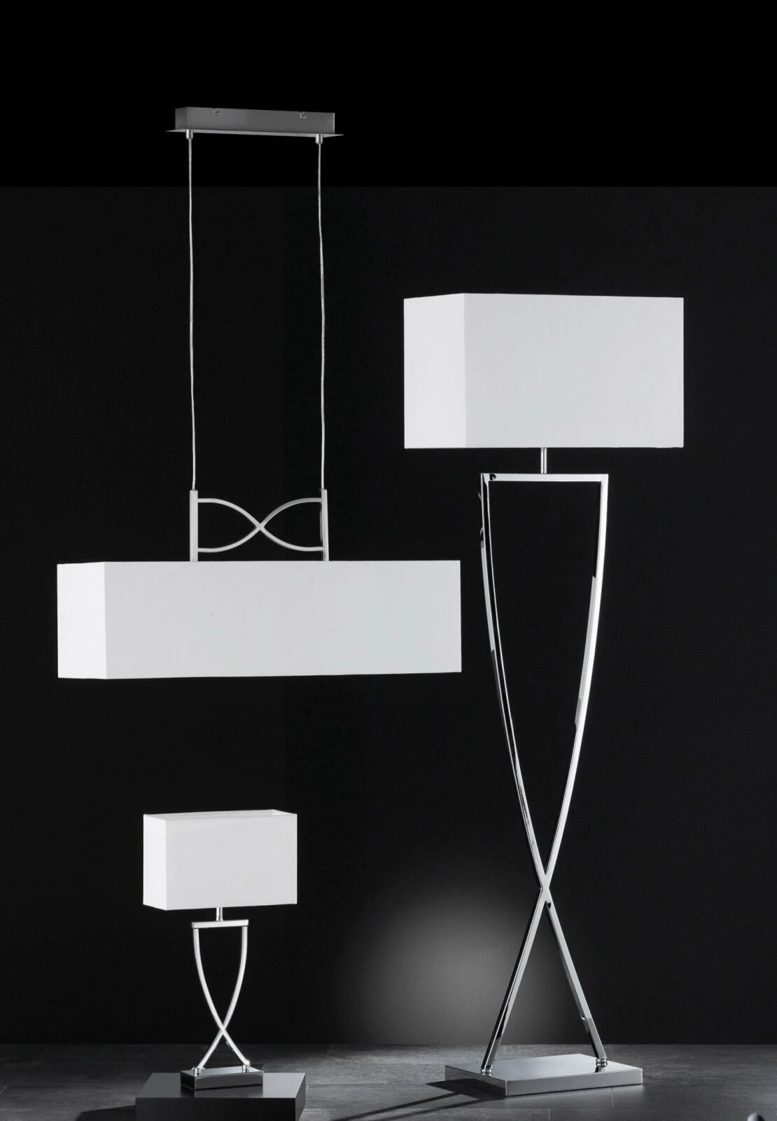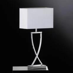Topmoderne Tischlampe ANNI mit chromfarbenem Gestell und weißem Schirm. Das Design dieser Lichtquelle ist ein echter Hingucker und verleiht Ihren Räumlichkeiten ein spektakuläres Wohnambiente.