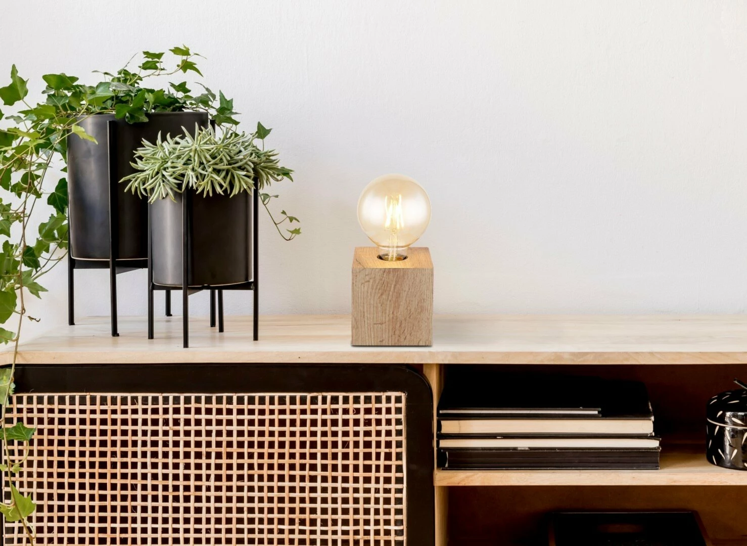 Die Tischlampe im Würfel Design liefert aufgrund der Form, eine schlichte Optik und sieht dadurch bemerkenswert aus.