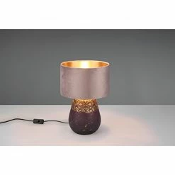 Tischlampe – rosé-braun – Samt – Keramikfuß – 26 cm Ø