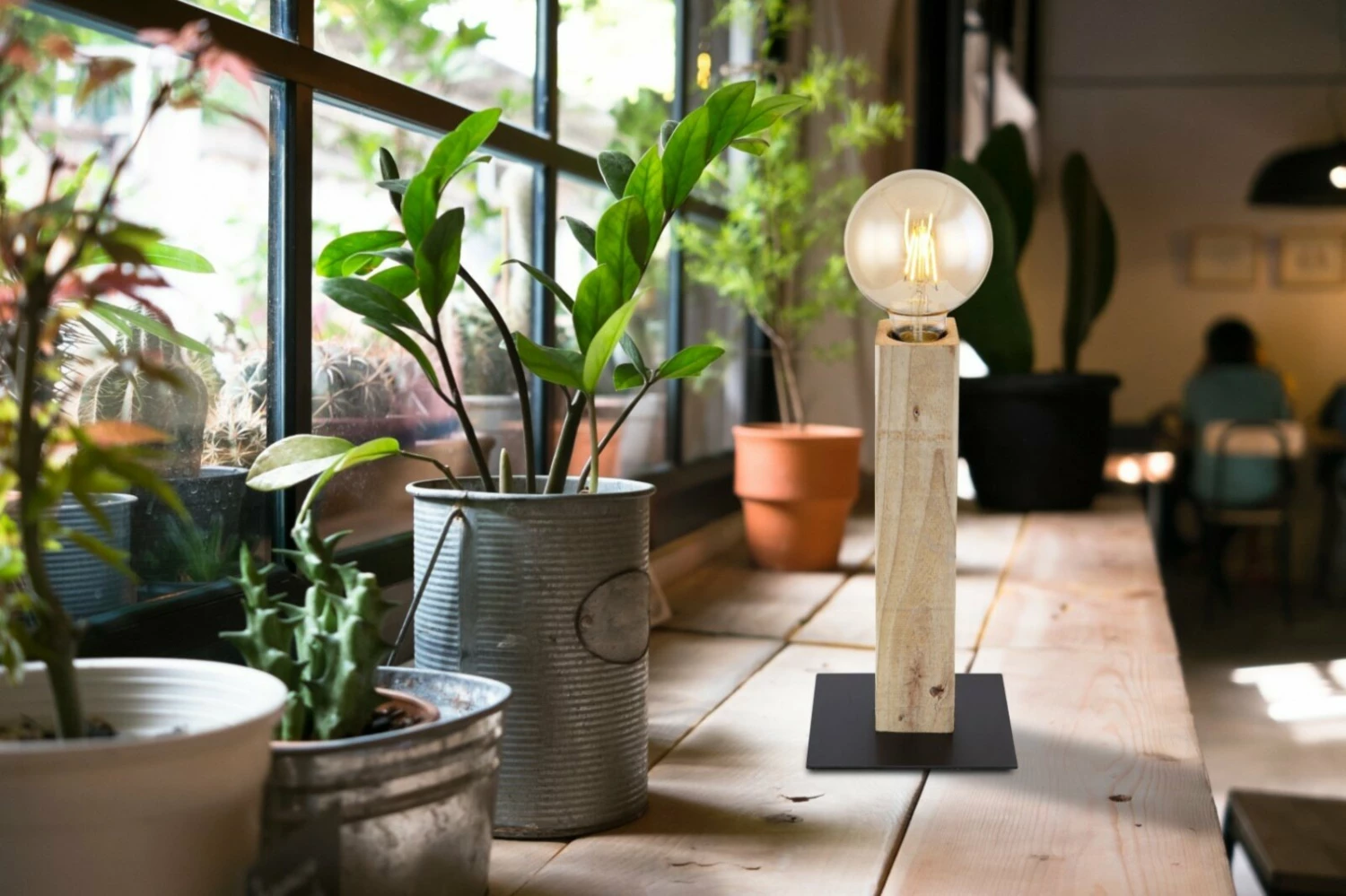 Tischlampe – schwarz-dunkelbraun – Holz-Metall – 30 cm
