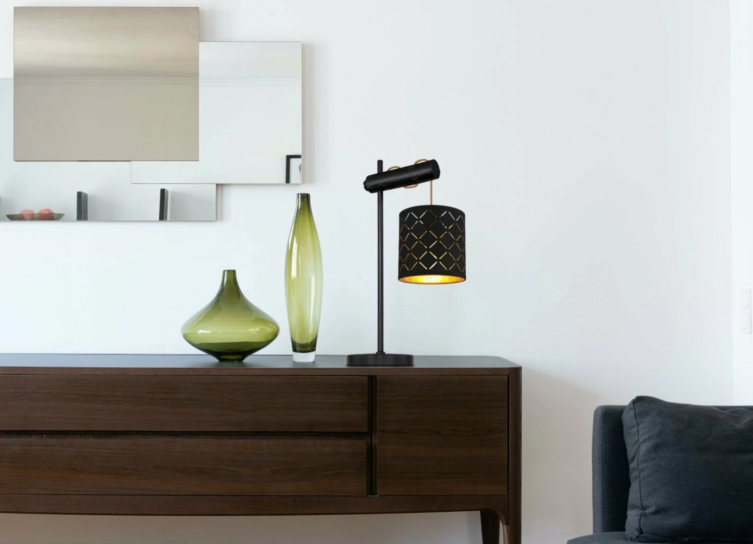 Tischlampe – schwarz-gold – Metall – 48 cm hoch