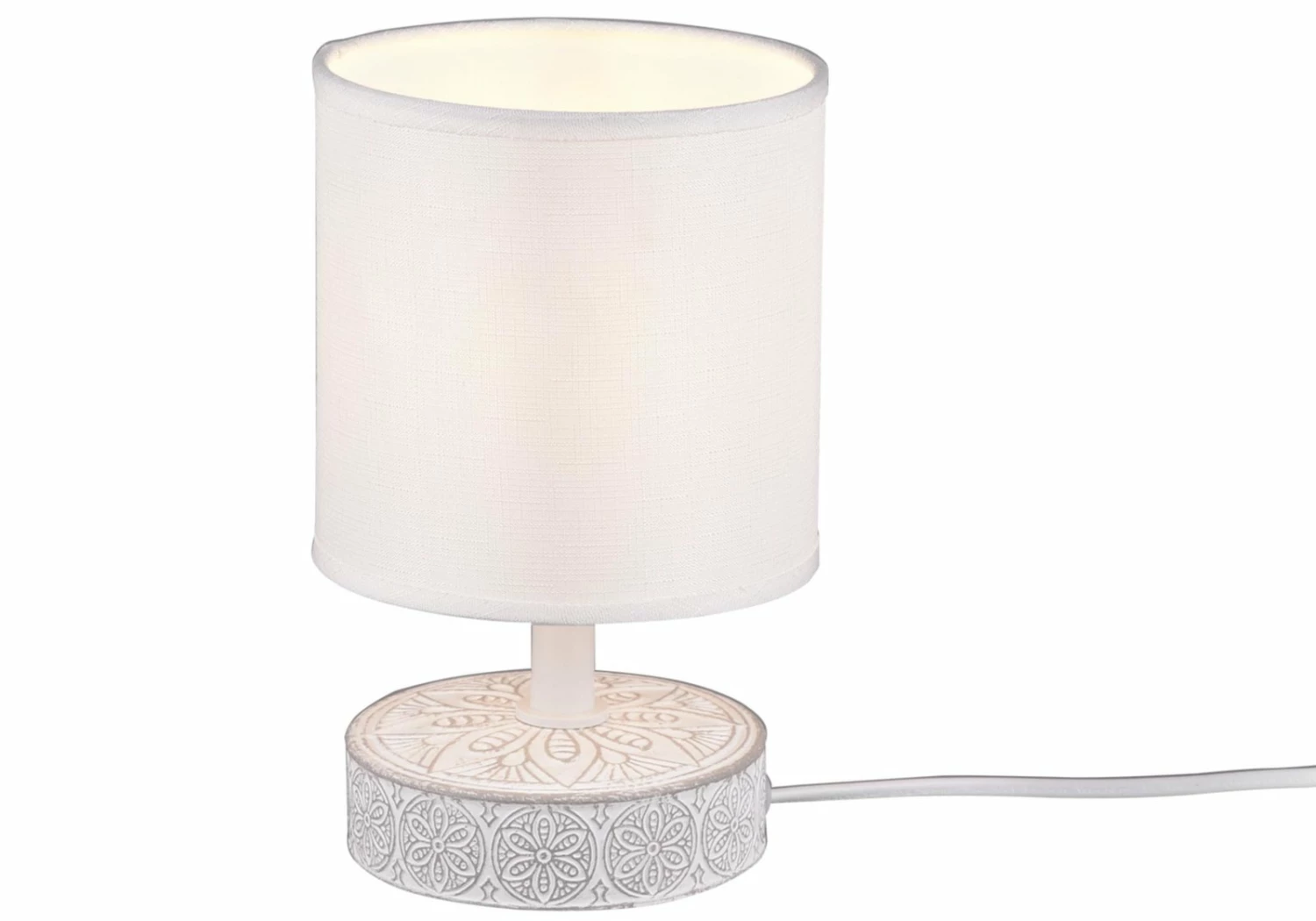 Der dekorative Sockel sorgt in Kombination mit dem schlichten Stoffschirm bei dieser Tischlampe für eine wunderschöne Optik, die Akzente in Ihrem Wohnbereich setzen wird. Die weiße Farbgebung lässt sich mit den unterschiedlichsten Einrichtungsstilen kombinieren.